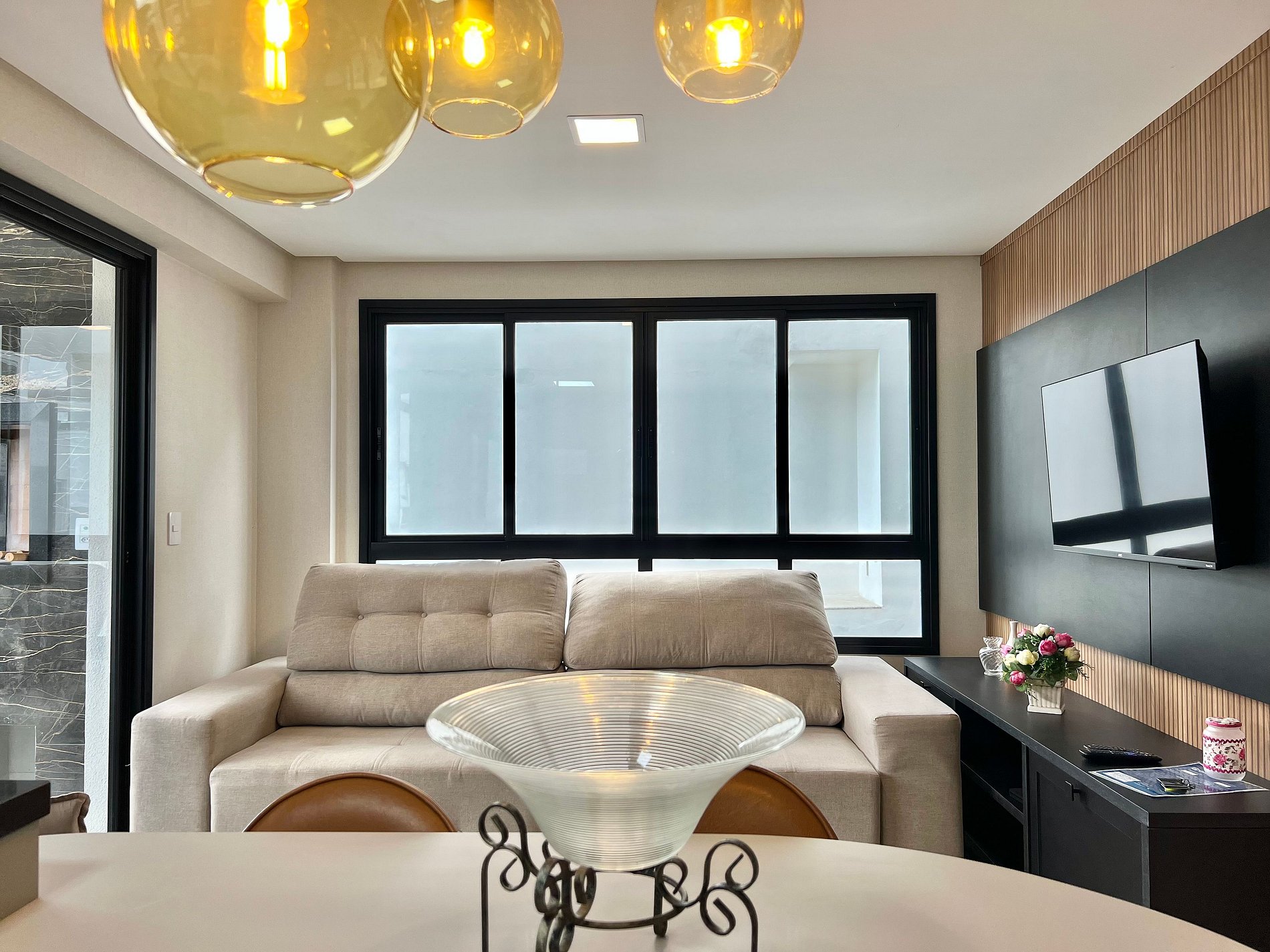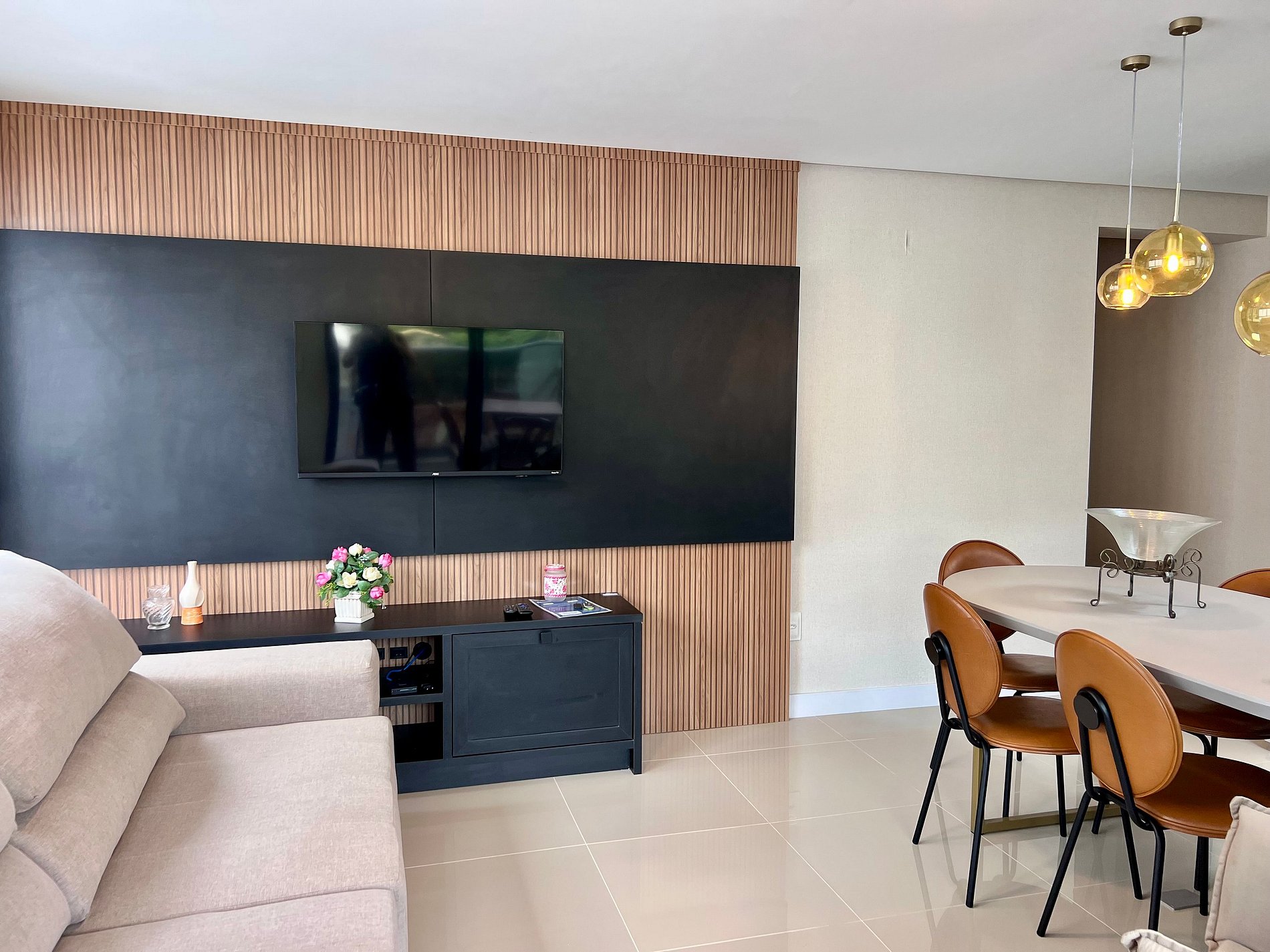 1 Cama Queen , 2 Camas de casal, ar-condicionado nos quartos, Smart TV na sala e 1 vaga de garagem.