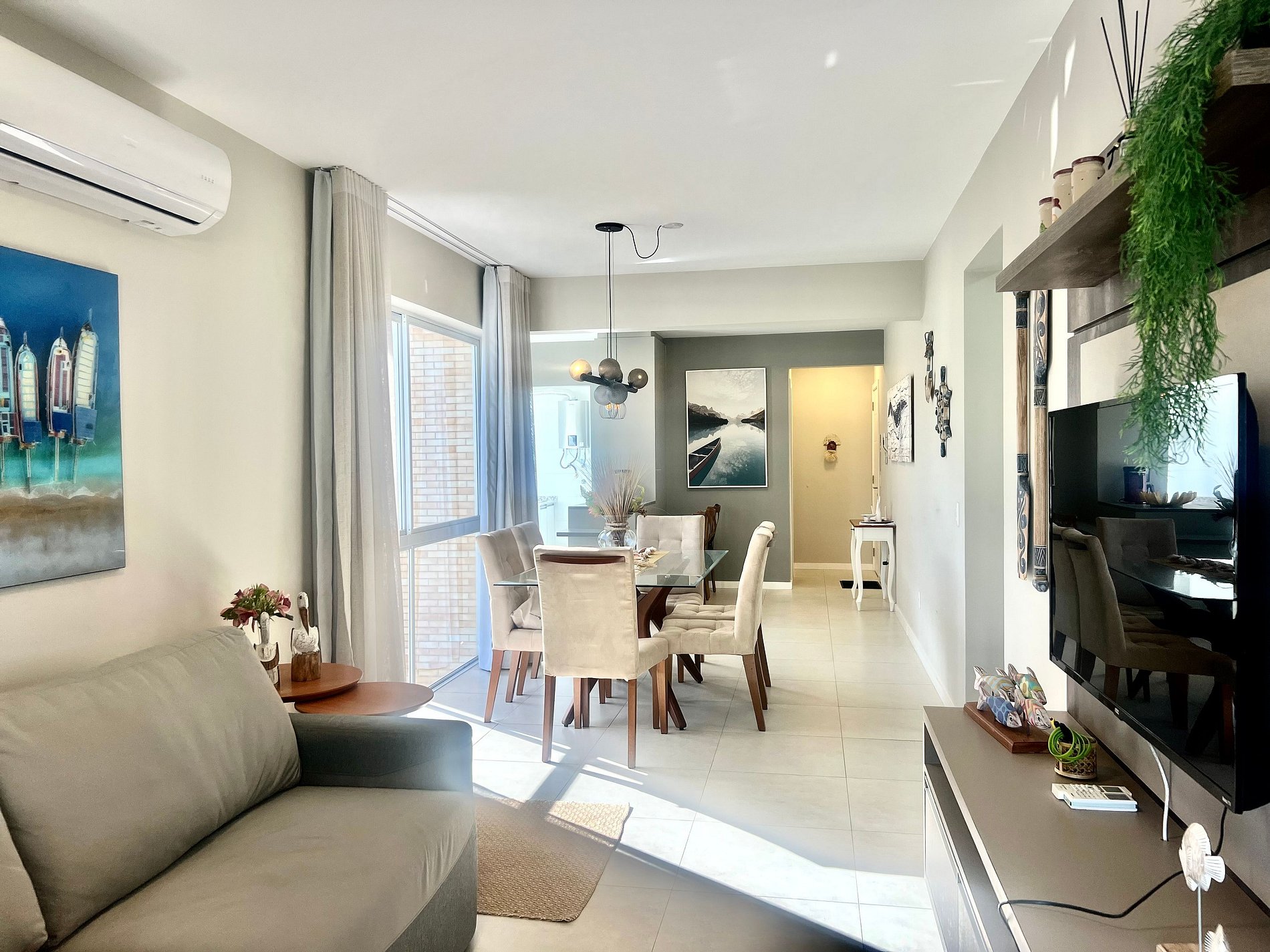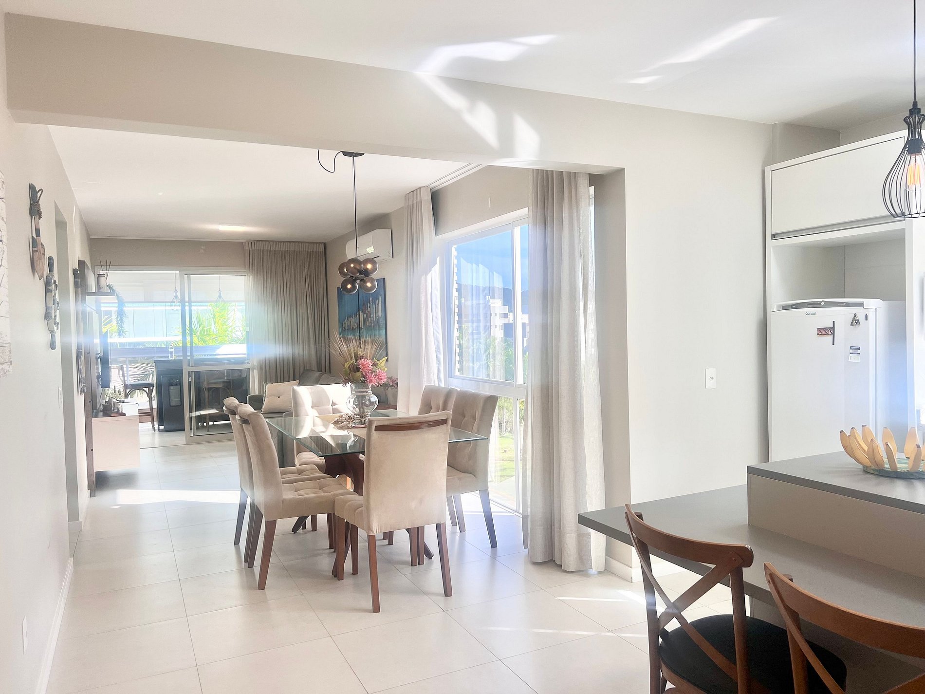 2 Camas de casal, 1 colchão extra de casal, ar-condicionado na sala e quartos, Smart TV na sala.