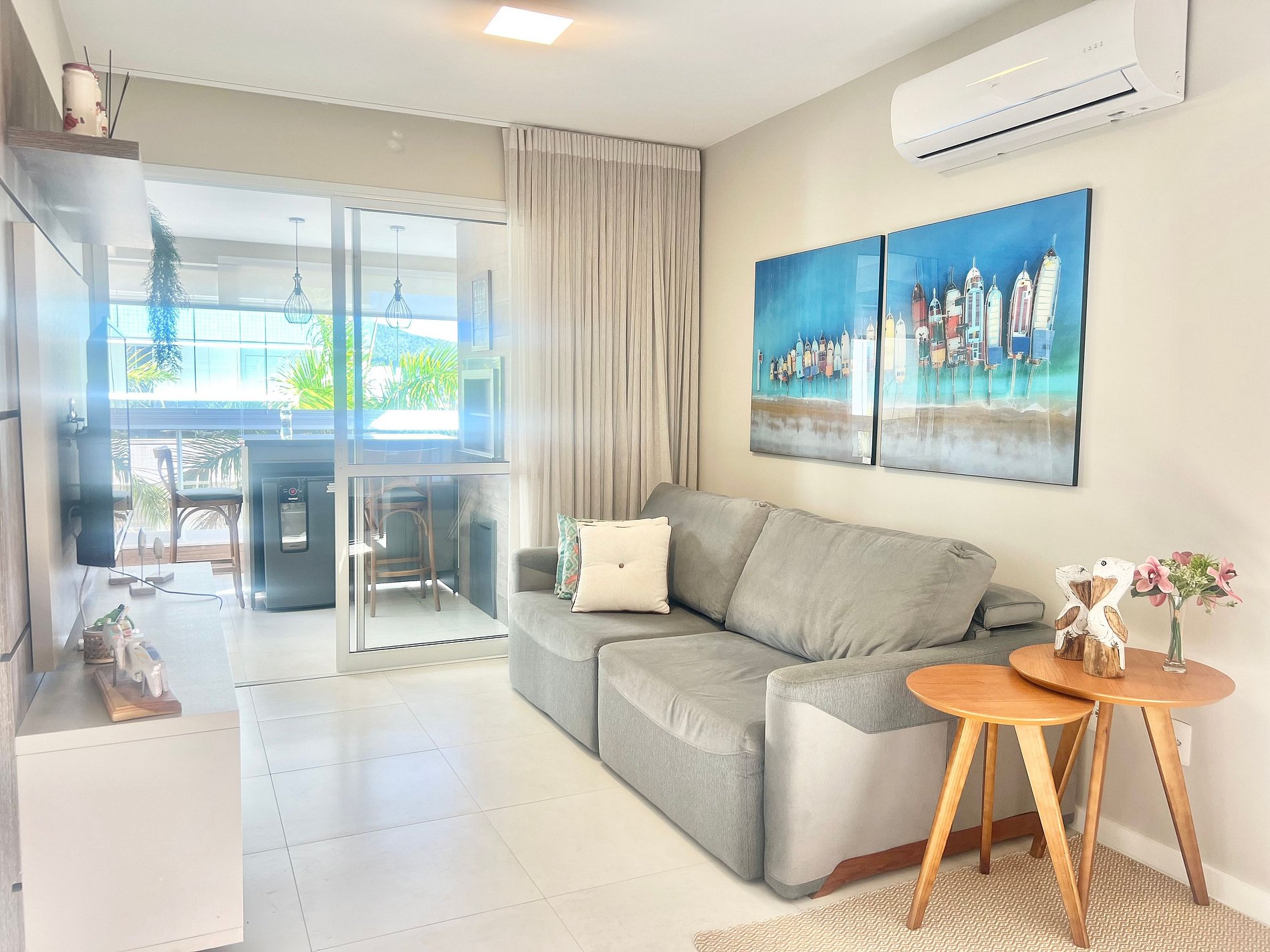Lindo apartamento em condomínio com piscina na praia de Palmas. Com duas suítes. Localização perfeita na Praia de Palmas, essa propriedade conta com internet Wifi, Smart TV, ar condicionado nos quartos e sala, churrasqueira, cozinha super completa.