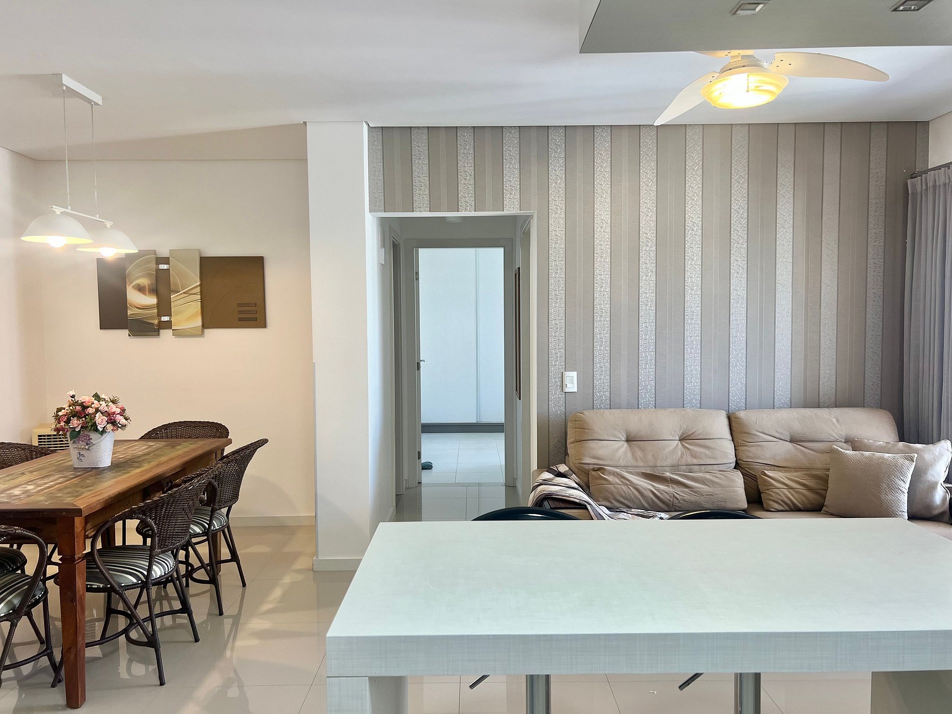 1 Cama de casal , 1 cama Queen, ar-condicionado nos quartos, Smart TV na sala.