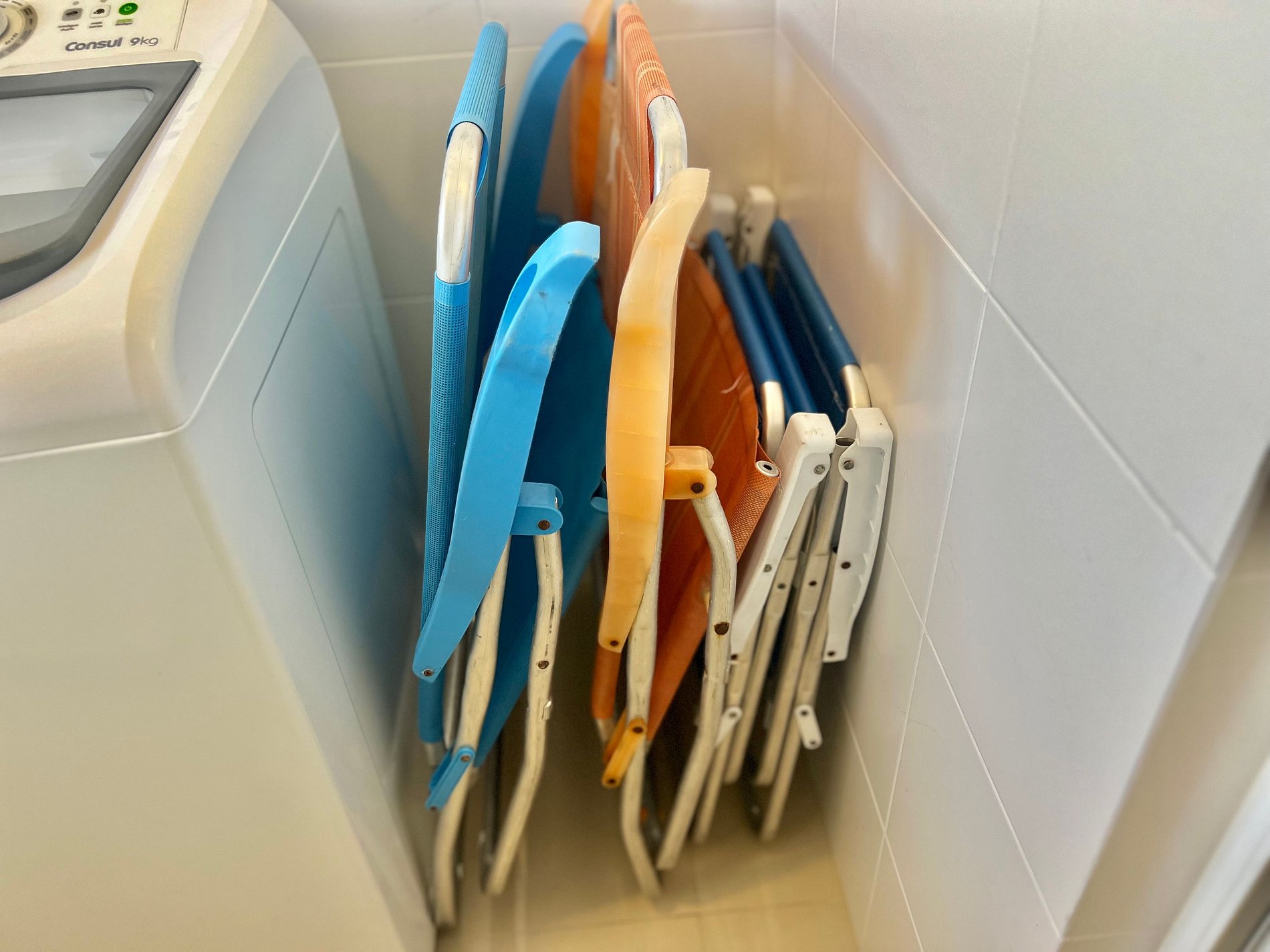 Itens de praia fornecidos: 4 cadeiras de praia e 1 guarda sol.