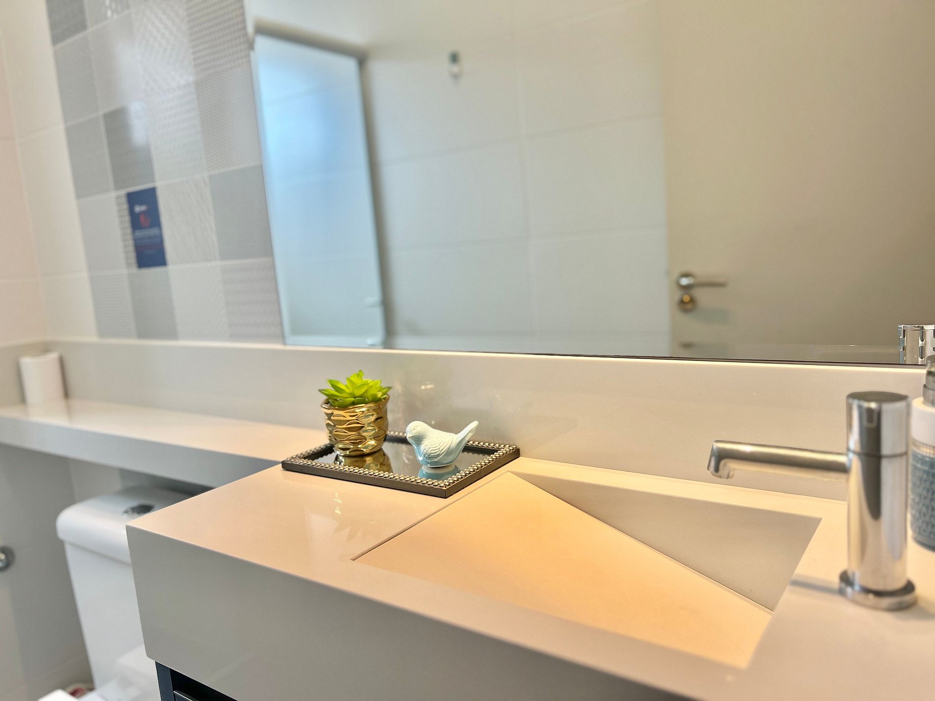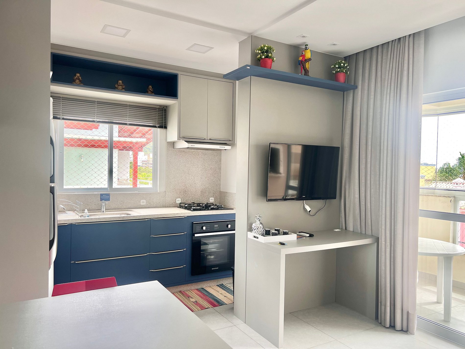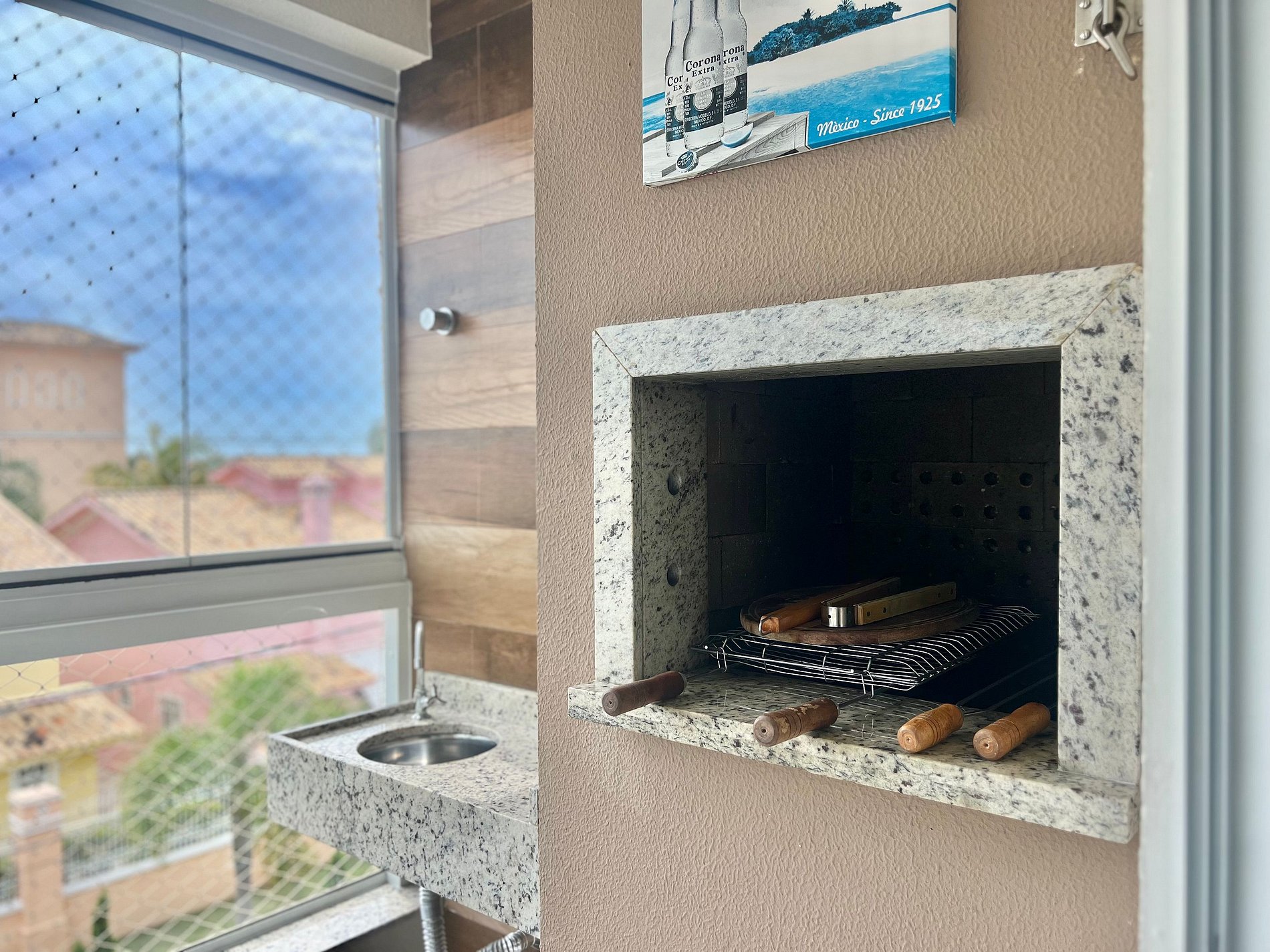 Apto possui, 2 quartos, sendo 1 suíte, ambos possuem ar condicionado. Sala com TV Smart e ar condicionado, Wi-fi, cozinha toda equipada e área de serviço com máquina de lavar, sacada com churrasqueira, 1 vaga de garagem coberta. Ambiente super preparado para receber os hóspedes da melhor forma.