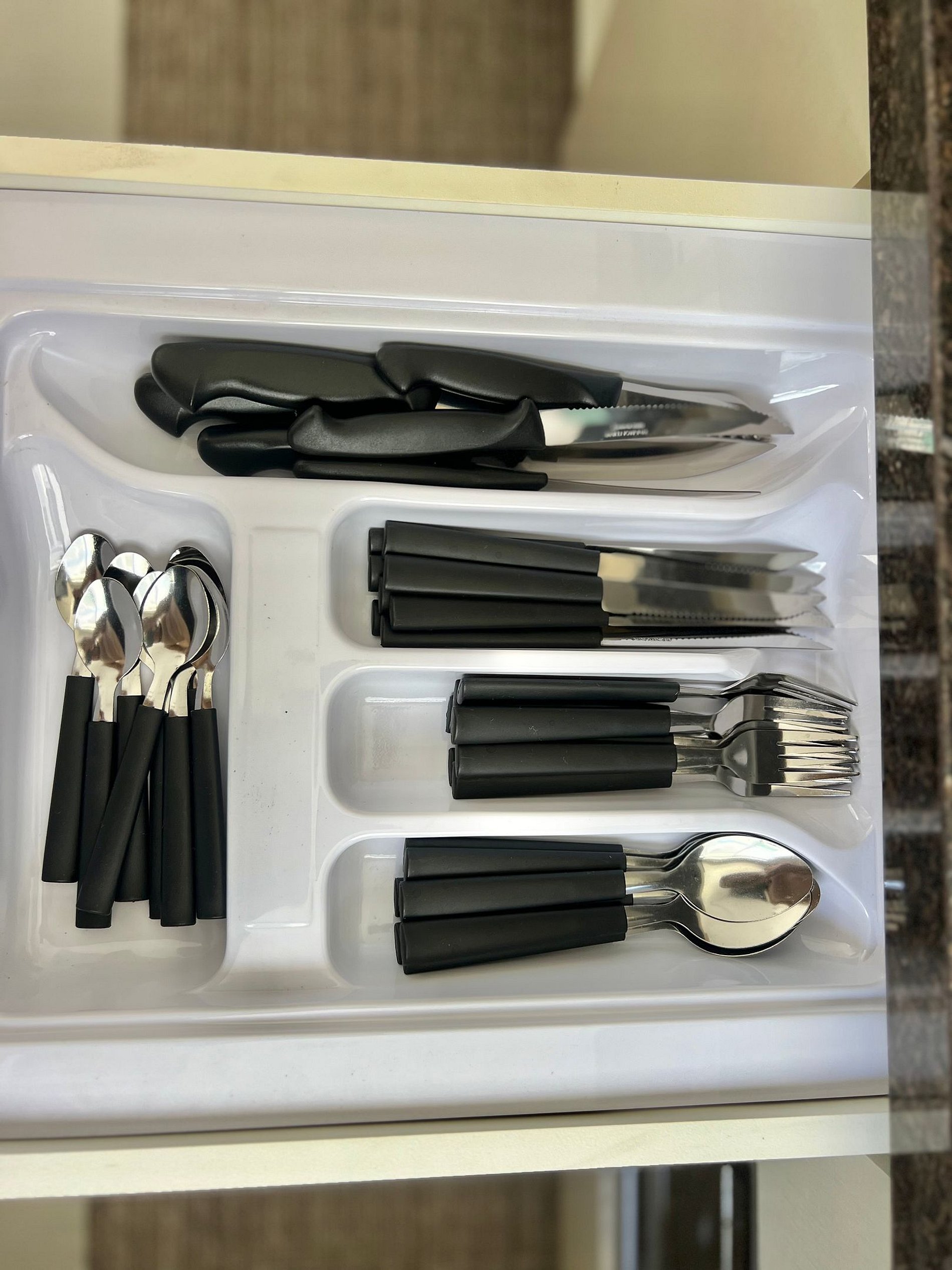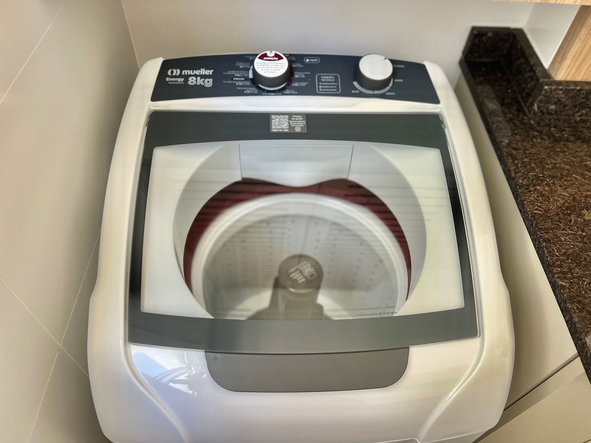 Cozinha: Fogão a gás, geladeira, liquidificador, micro-ondas, forno, sanduicheira e utensílios de cozinha,