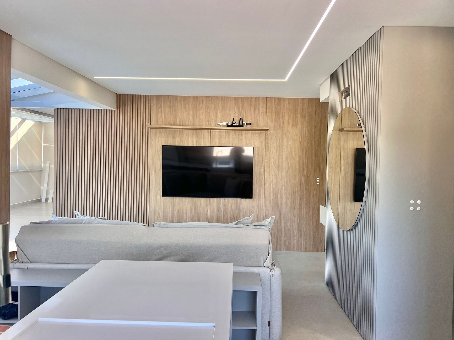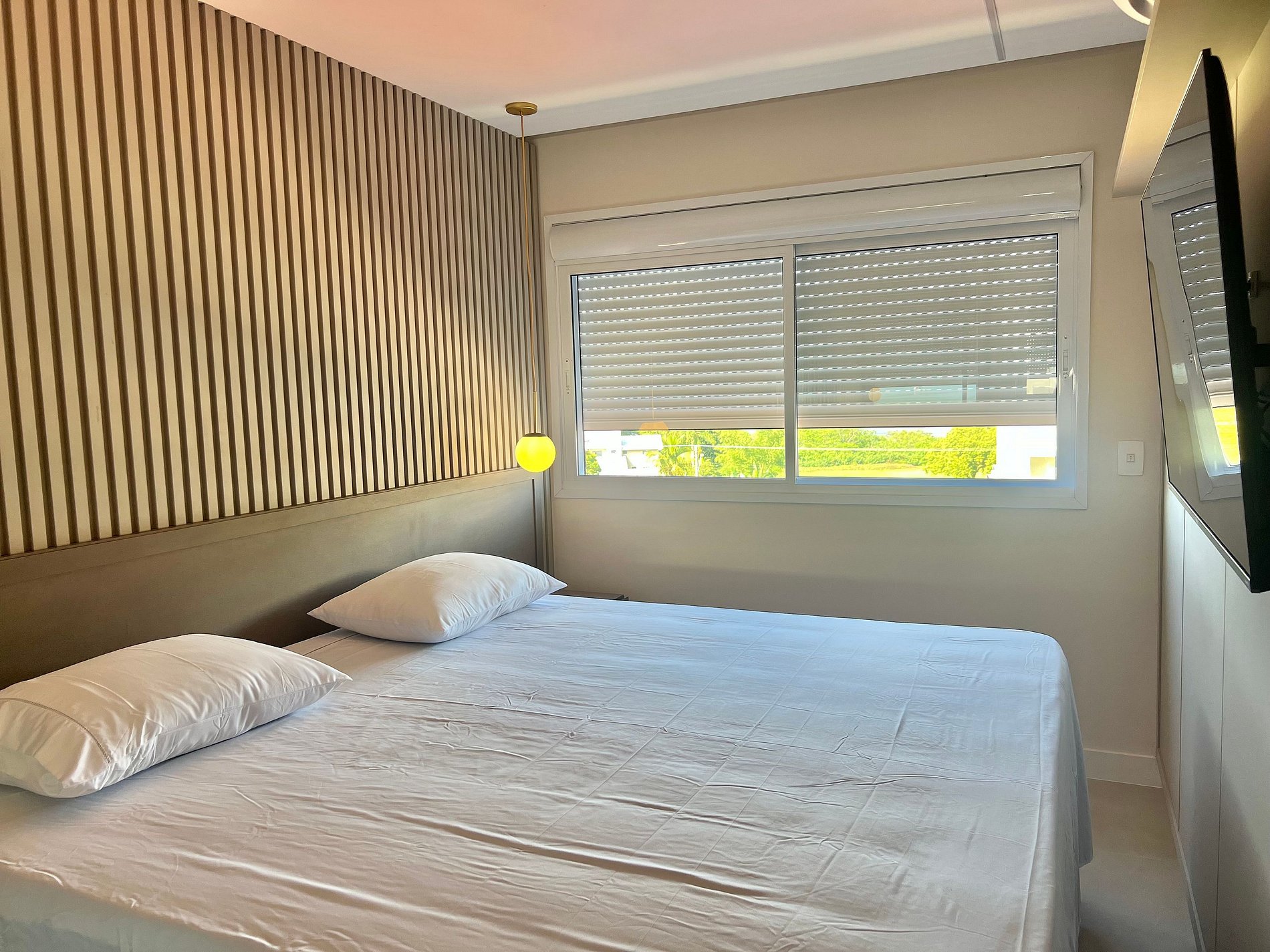 1 cama de casal King, 2 camas de casal, 1 sofá-cama, ar-condicionado na sala e quartos, Smart TV na sala.