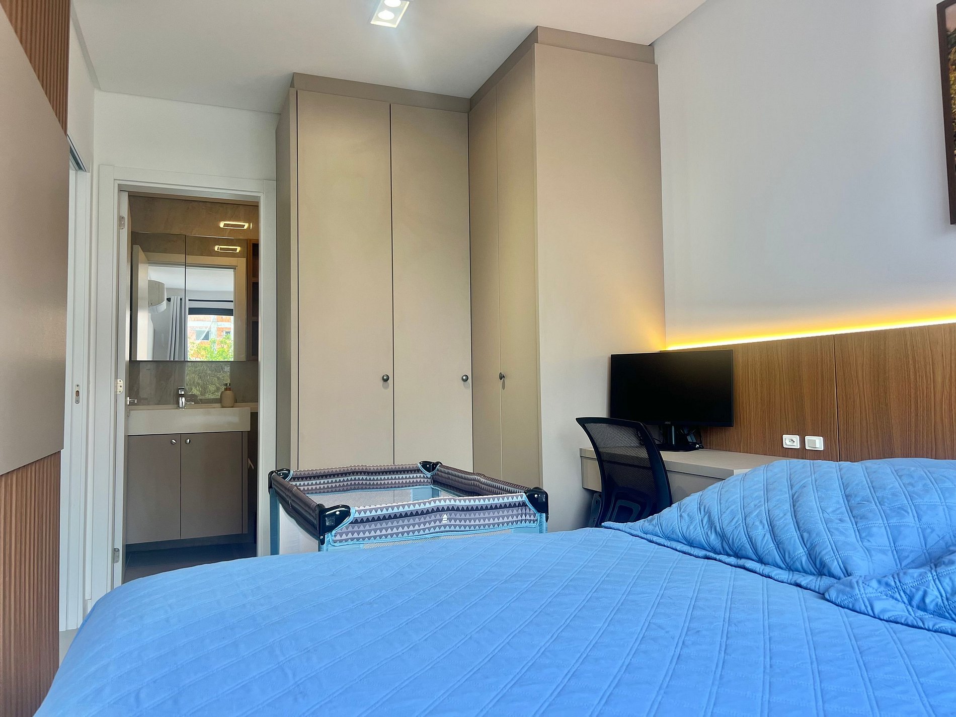 2 Camas Queen, 1 cama de casal, ar-condicionado nos quartos, Smart TV na sala.