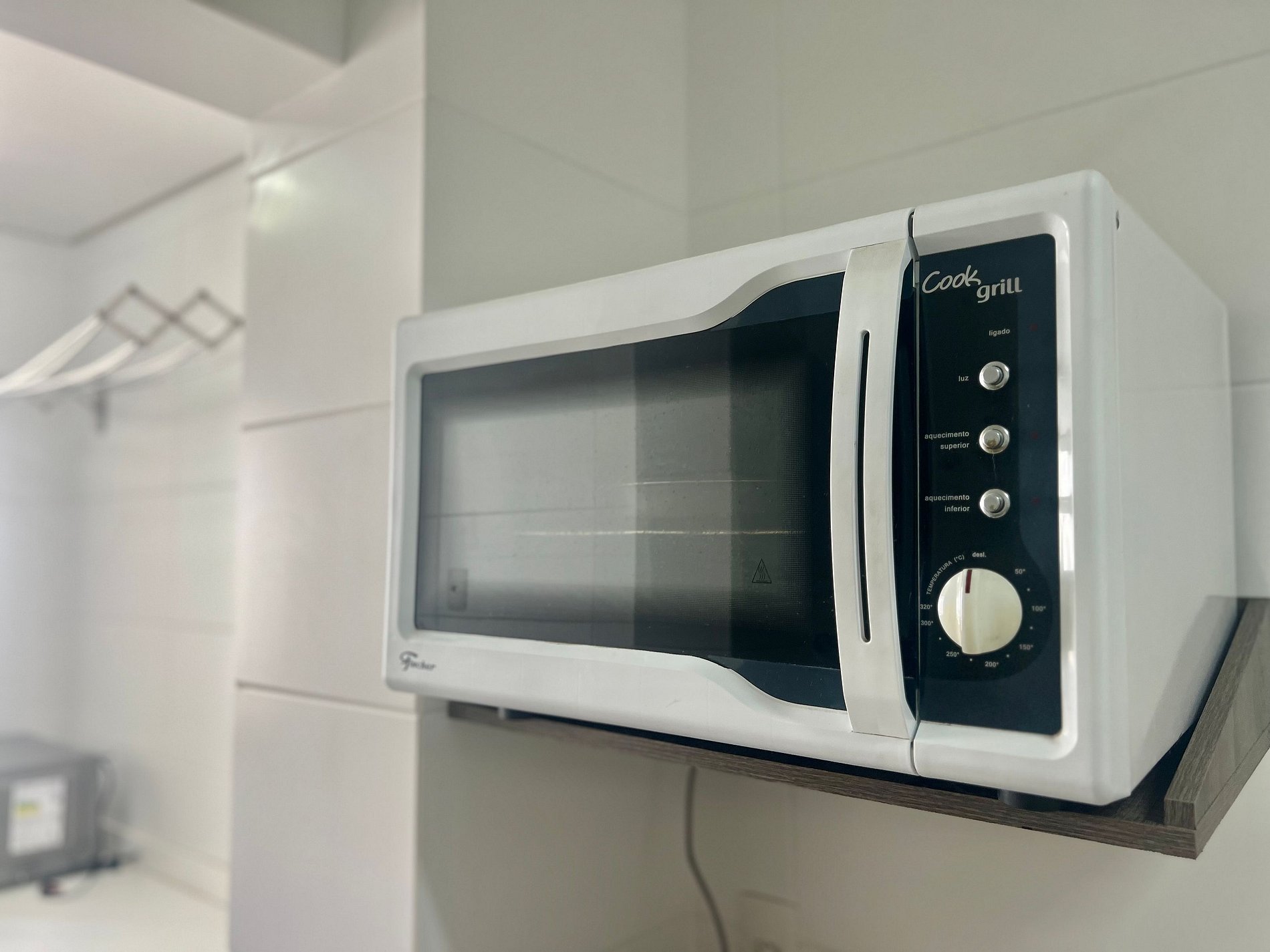 Cozinha: Fogão, geladeira, forno, micro-ondas e utensílios de cozinha.