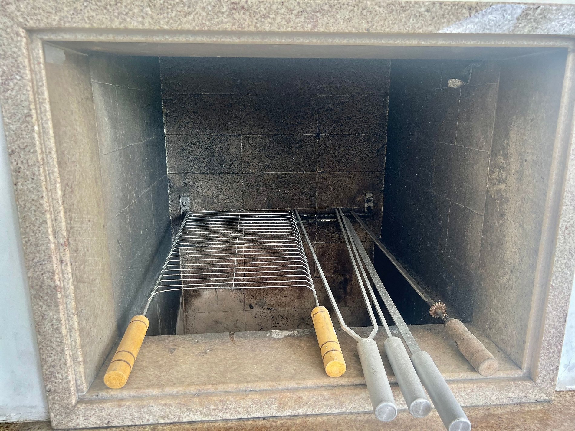 Itens de churrasco fornecidos: 1 Grelha inteira e 4 espetos.