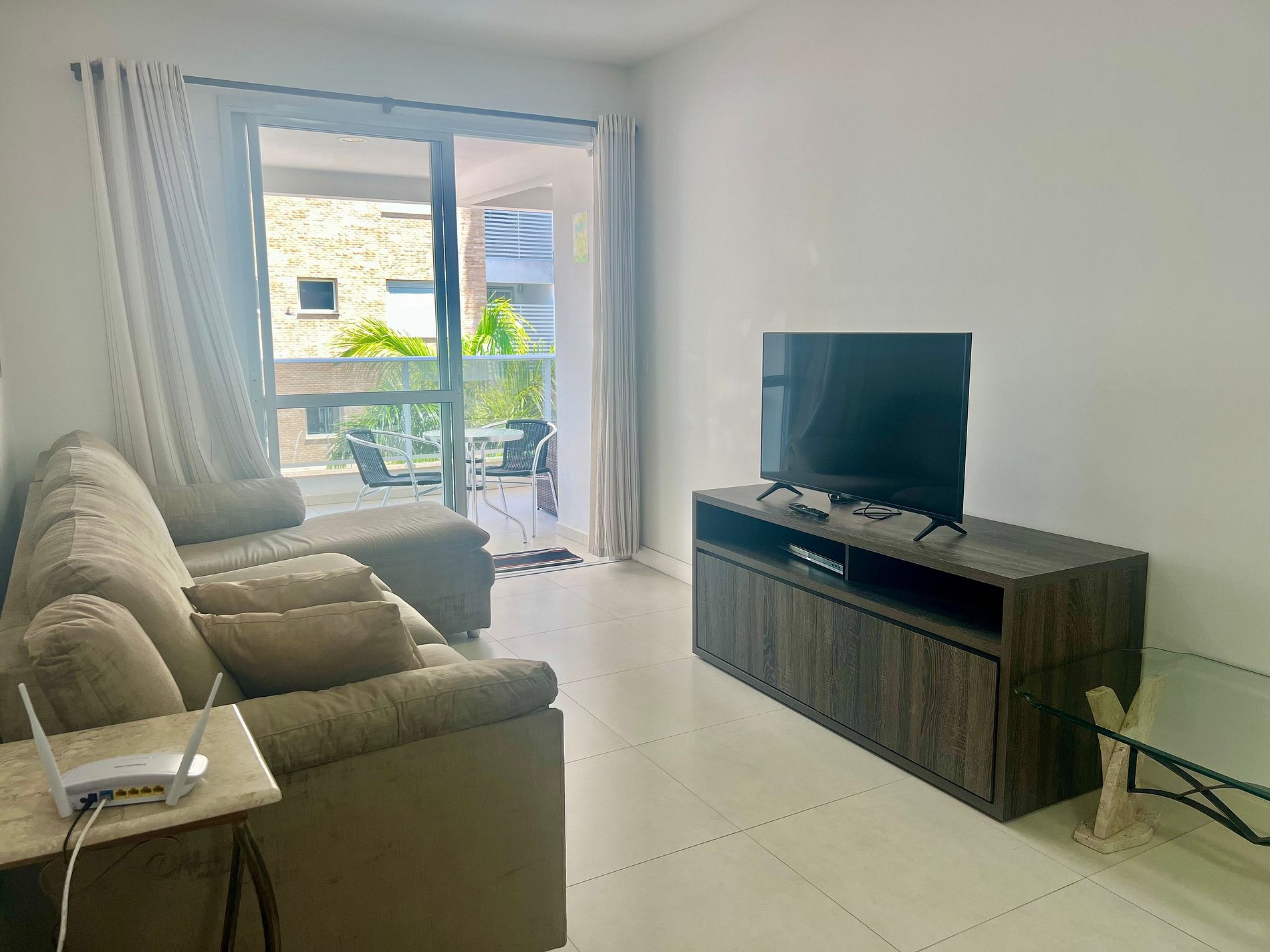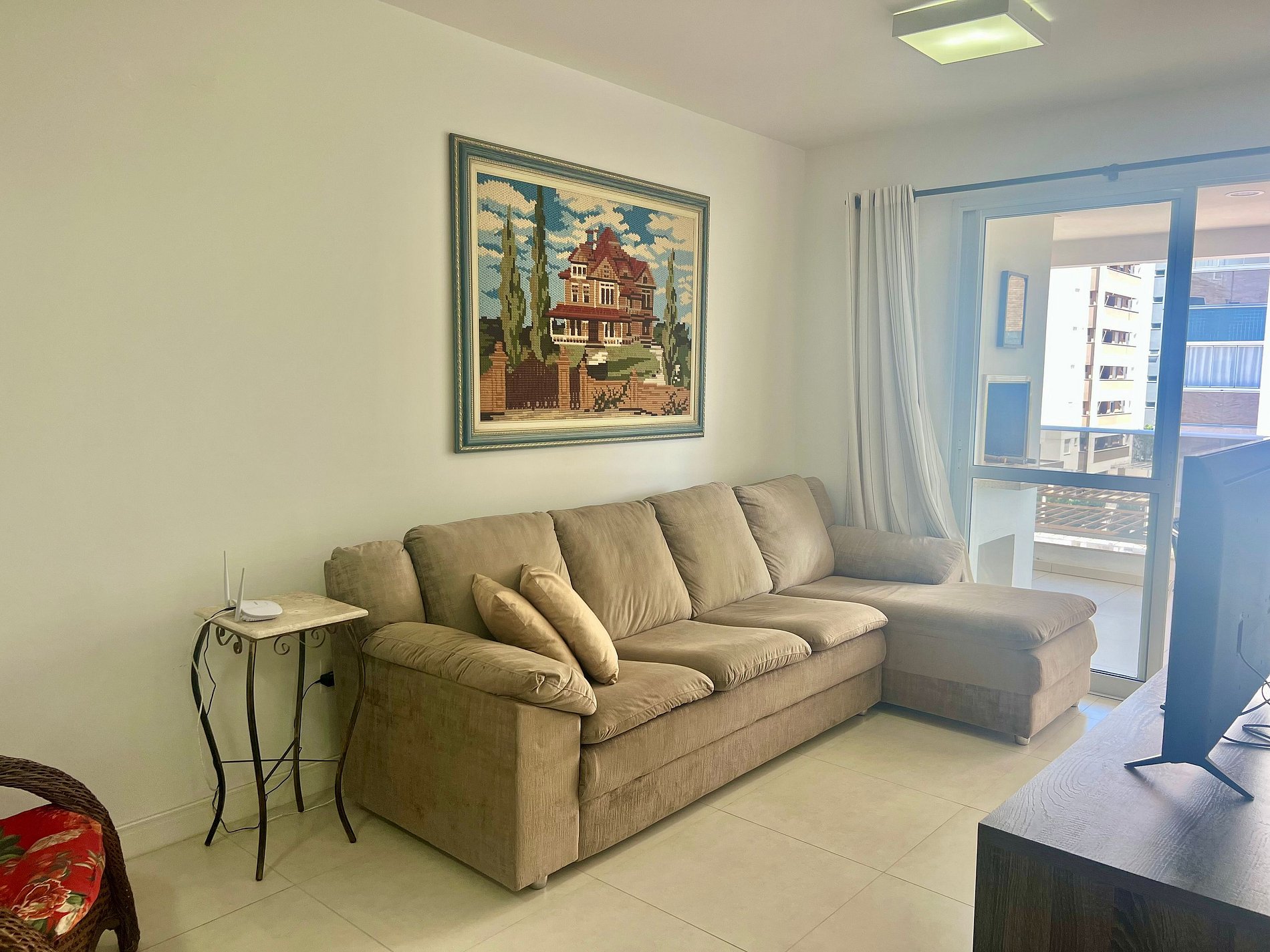 2 Camas de casal, 1 colchão extra de casal, ar-condicionado nos quartos, Smart TV na sala.