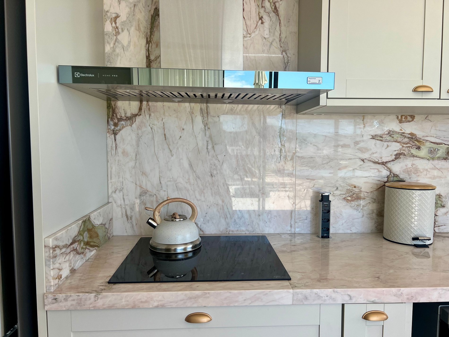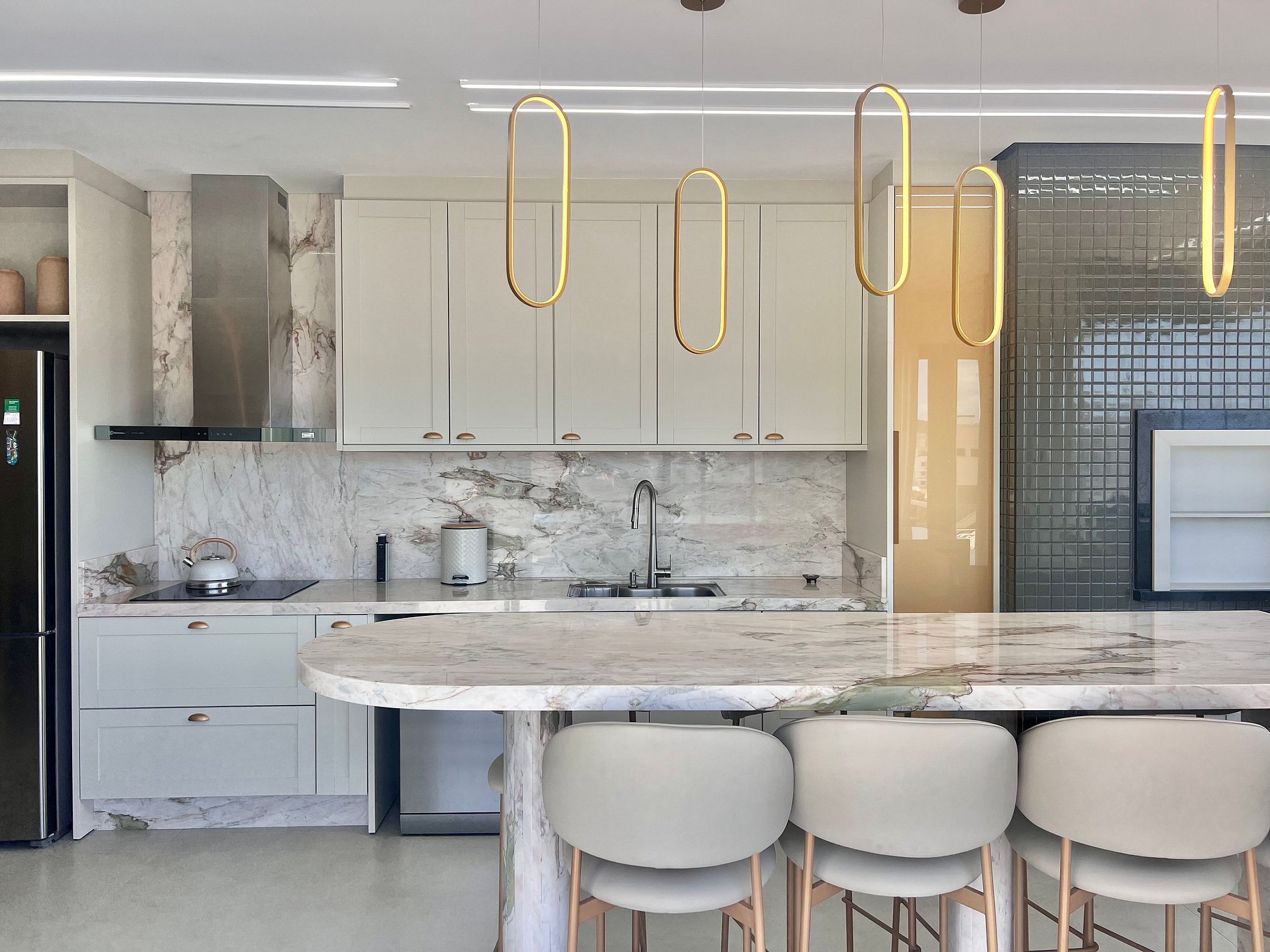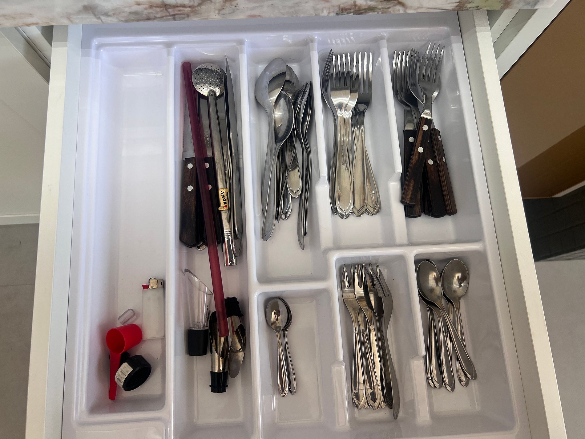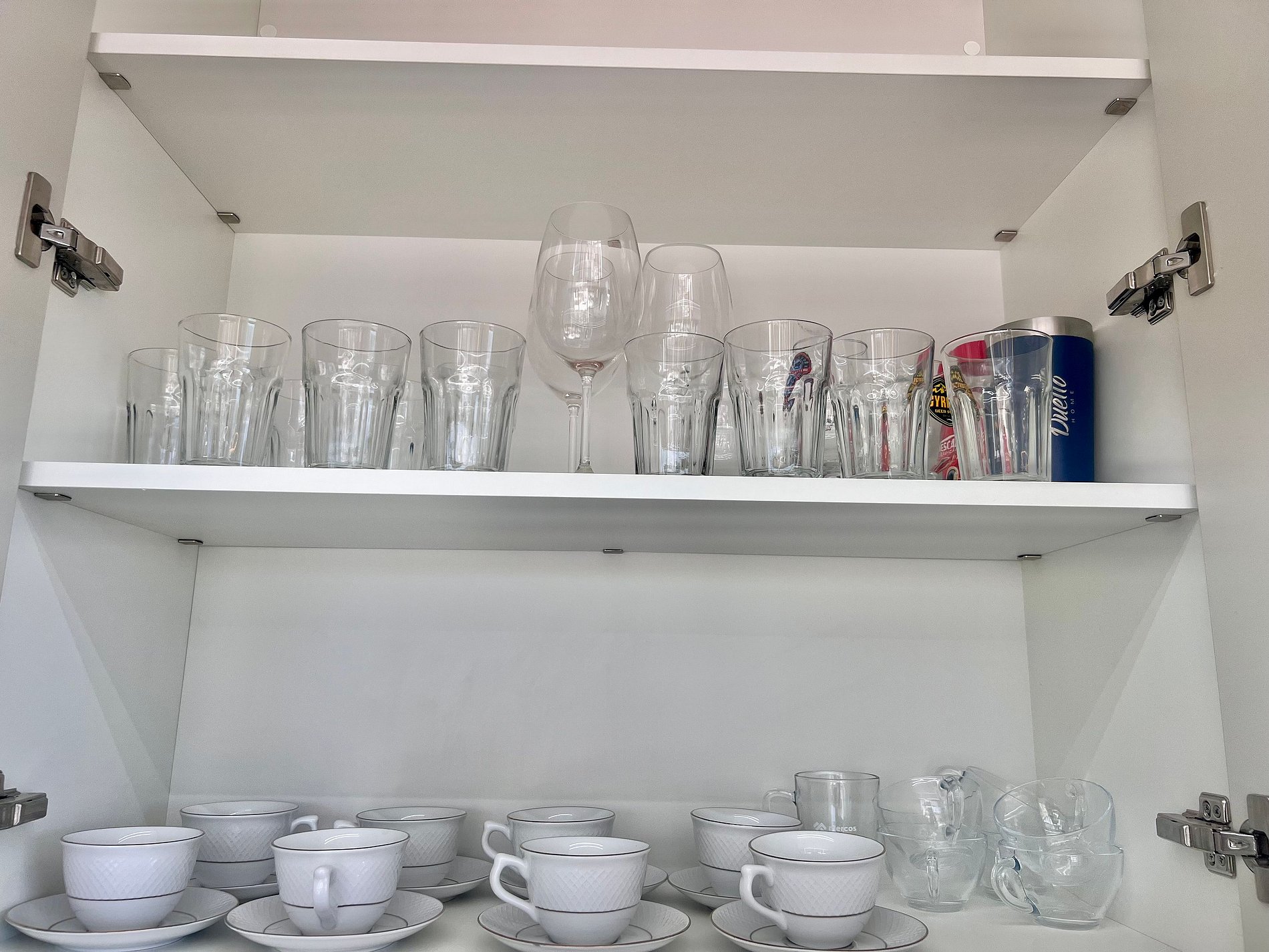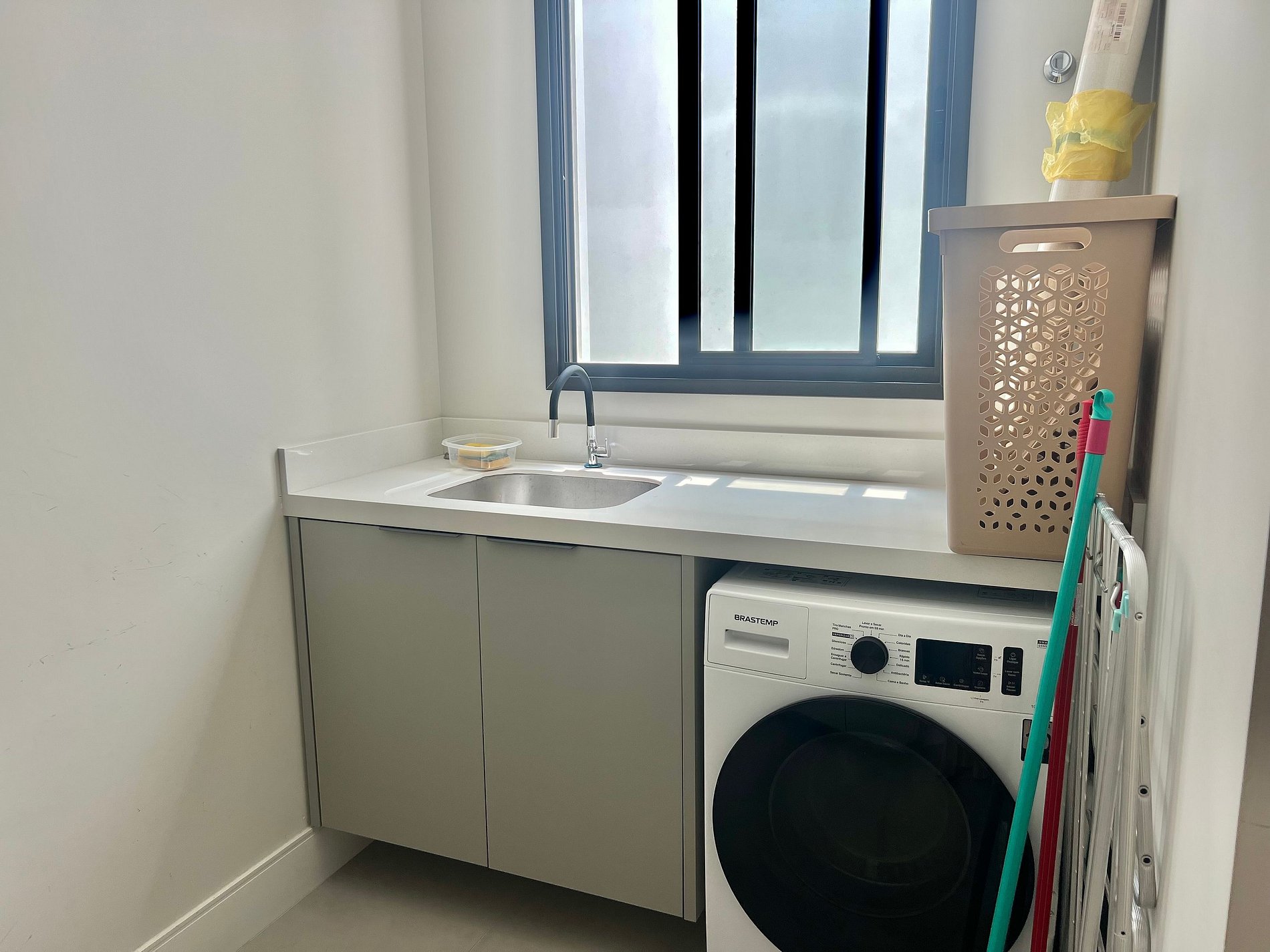 Cozinha: Geladeira, microondas, forno e utensílios de cozinha.