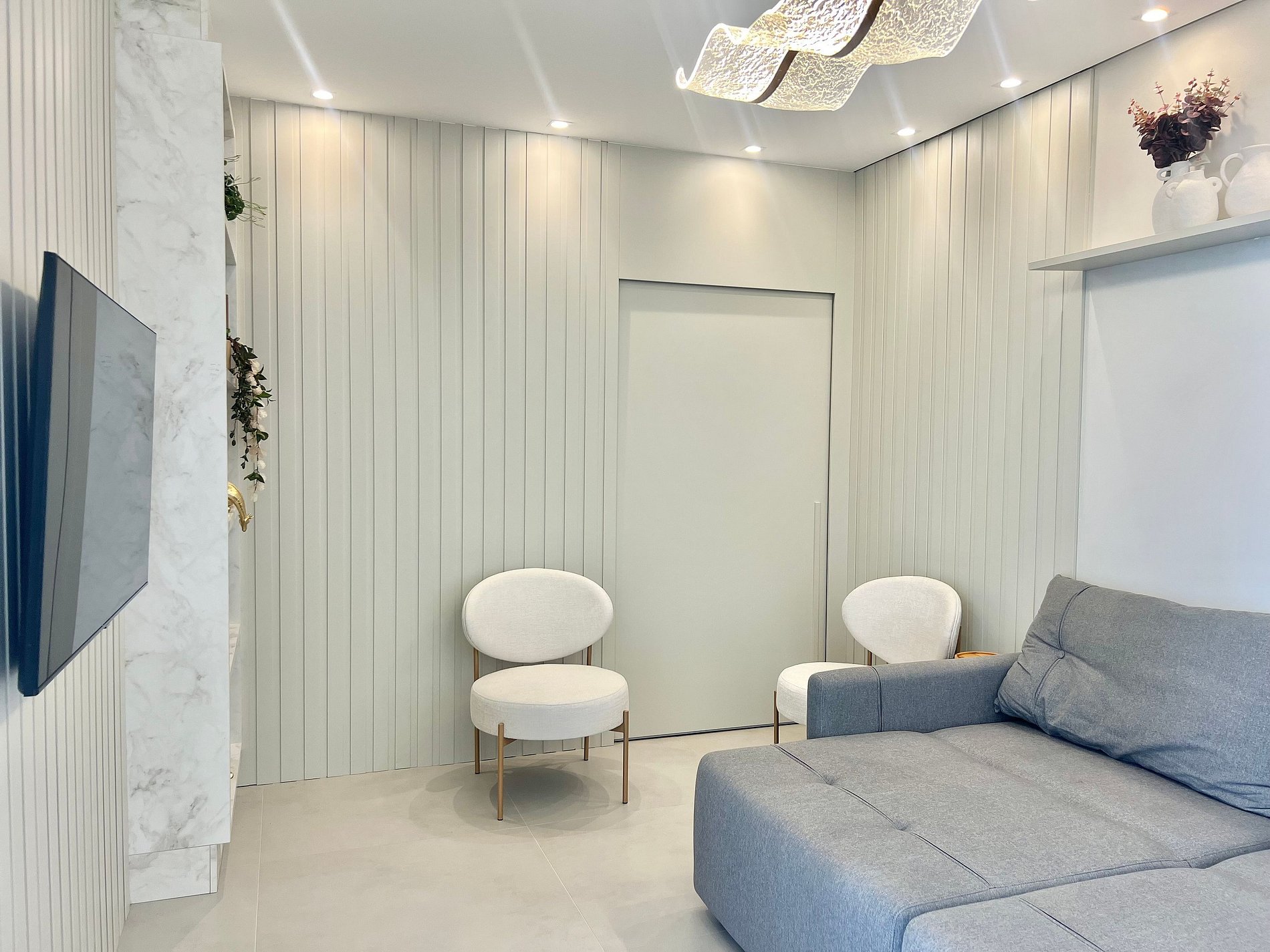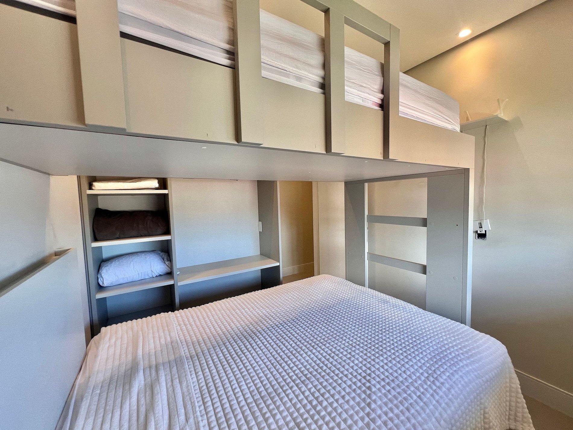 1 cama Queen, 1 cama King,1 Beliche com cama de casal, 1 sofá-cama de casal, ar-condicionado nos quartos, Smart TV na sala.