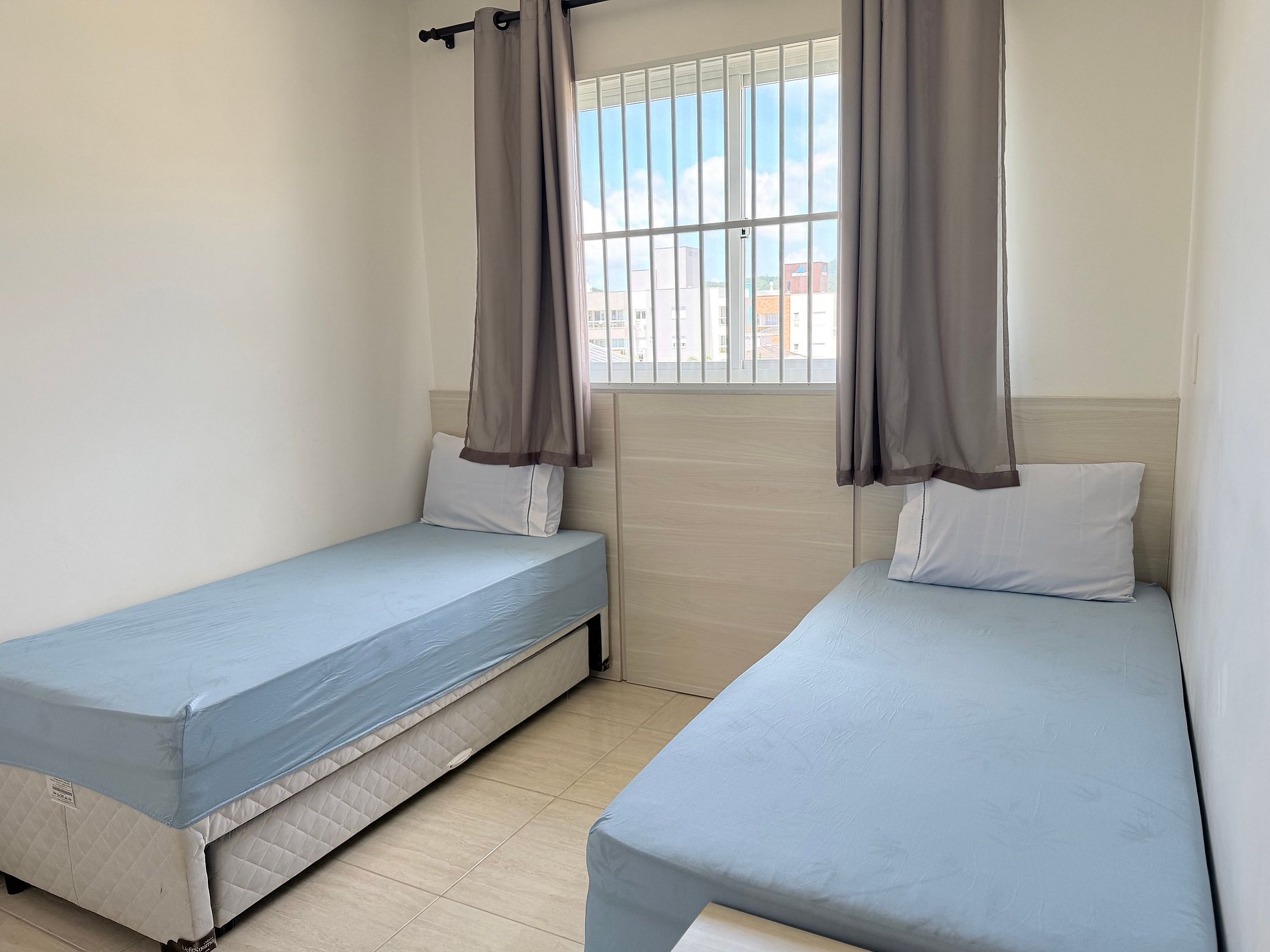 1 cama de casal, 2 bicamas , ar-condicionado nos quartos, Smart TV na sala.