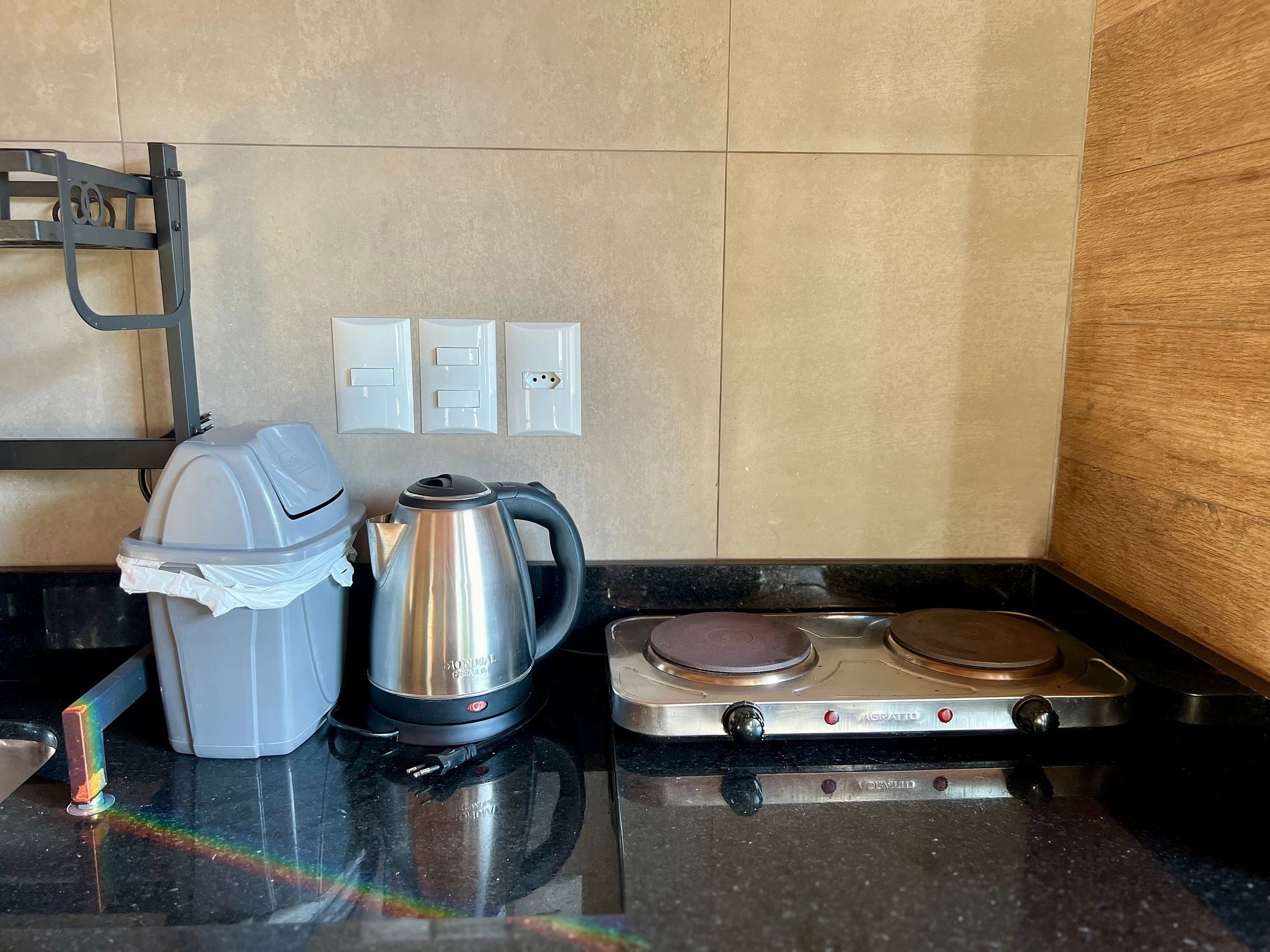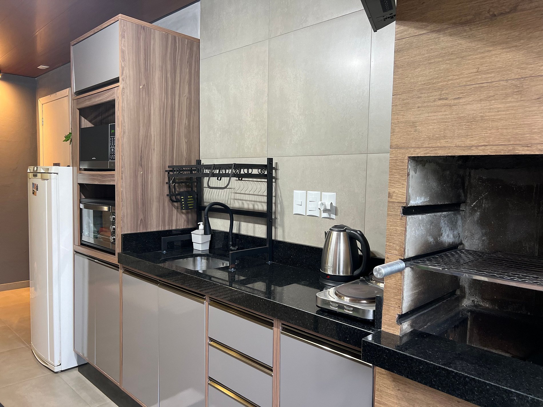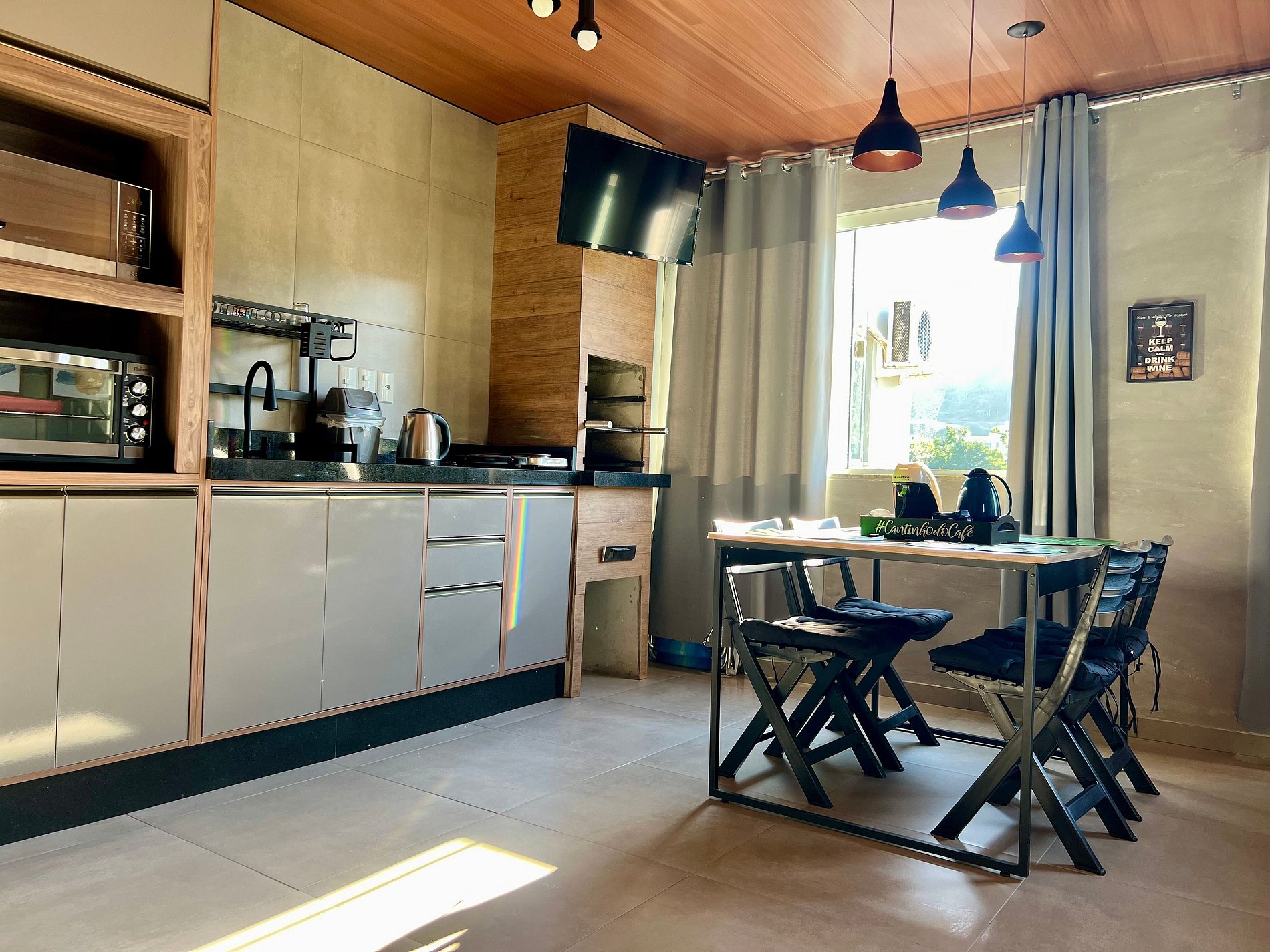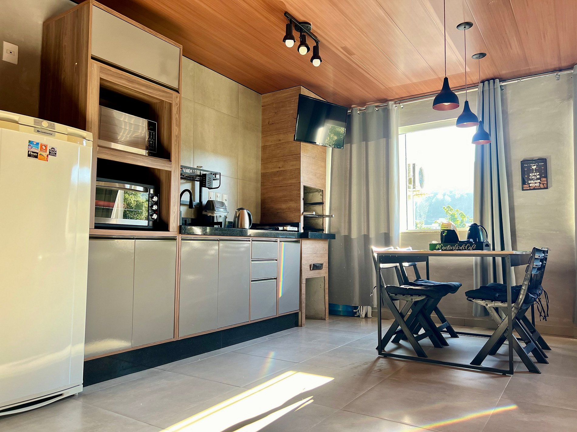A cozinha é completa com todos os itens básicos para você fazer um churrasco e suas refeições.