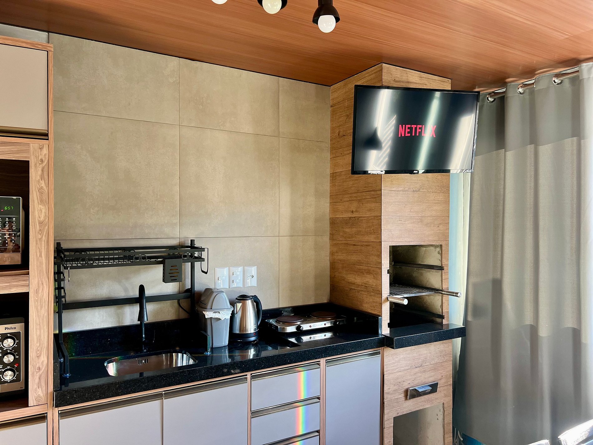 Com ar condicionado quente e frio, você poderá aproveitar sua estadia confortavelmente, fazendo um churrasco na sua churrasqueira privativa ou simplesmente curtindo sua família ou sua companhia em qualquer estação do ano.