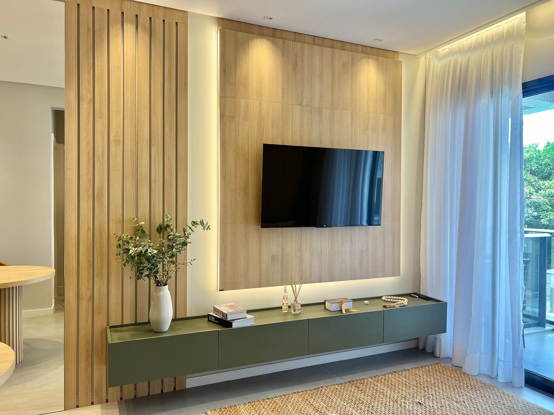 1 Cama Queen , 1 Cama de casal, ar-condicionado na sala e quartos, Smart TV.