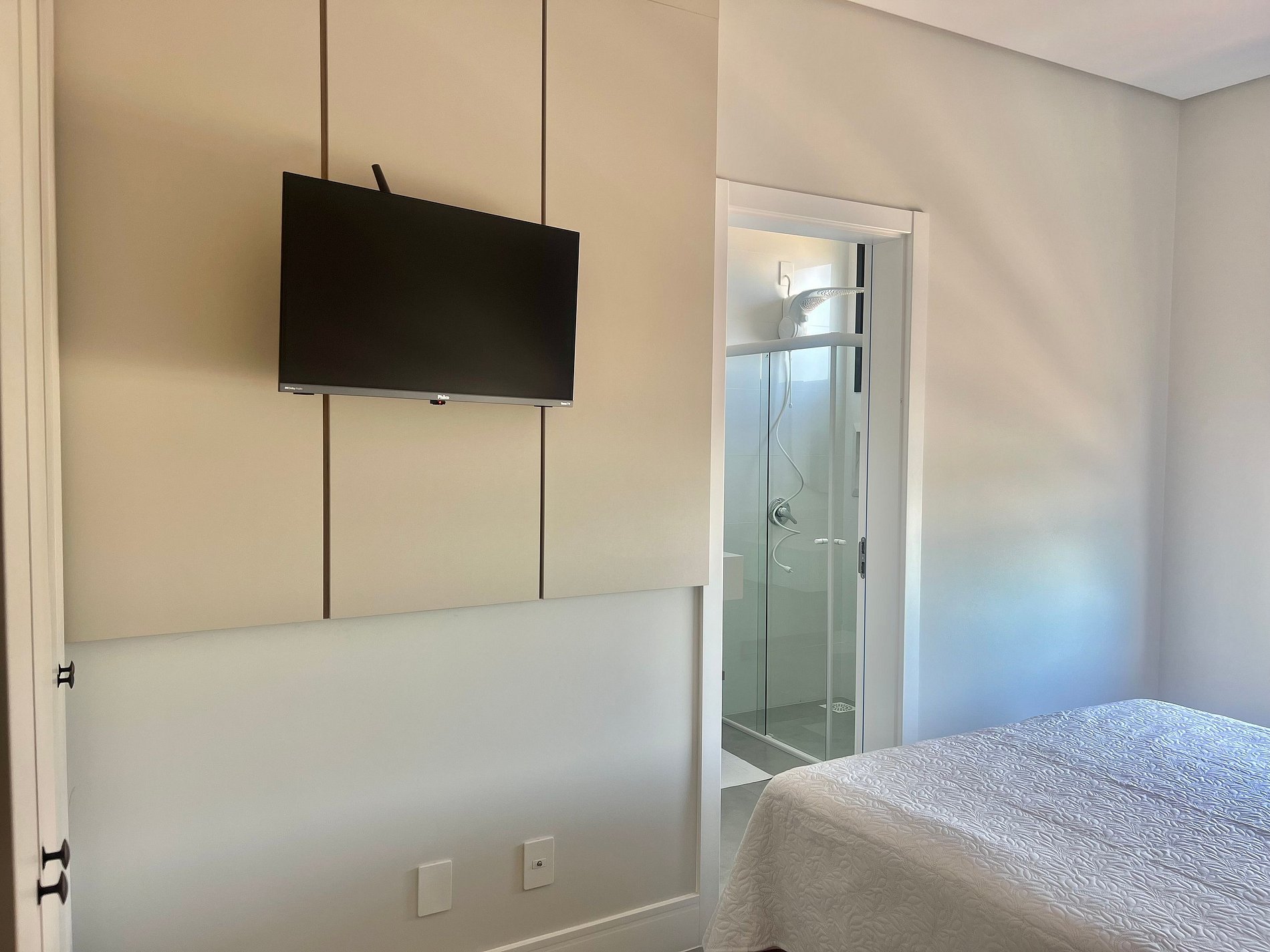 1 Cama queen , 1 cama casal, 2 camas de solteiro, sofá, ar-condicionado nos quartos e na sala, Smart TV.
