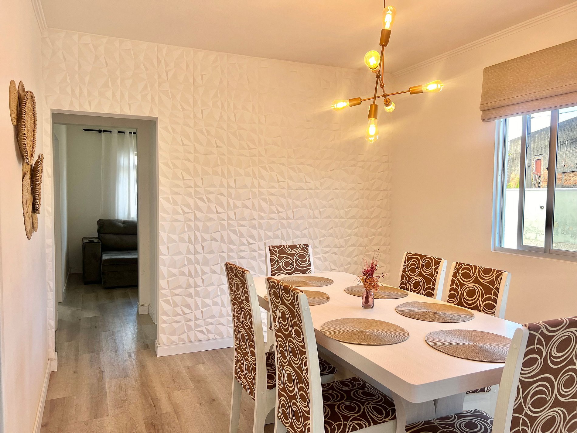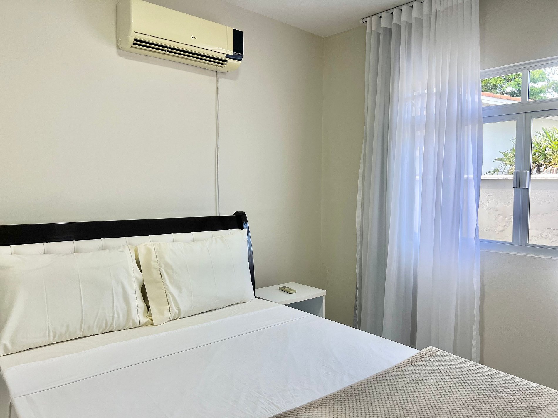 3 Camas casal , sofá retrátil, ar-condicionado em 2 quartos, 1 quarto com ventilador, TV.
