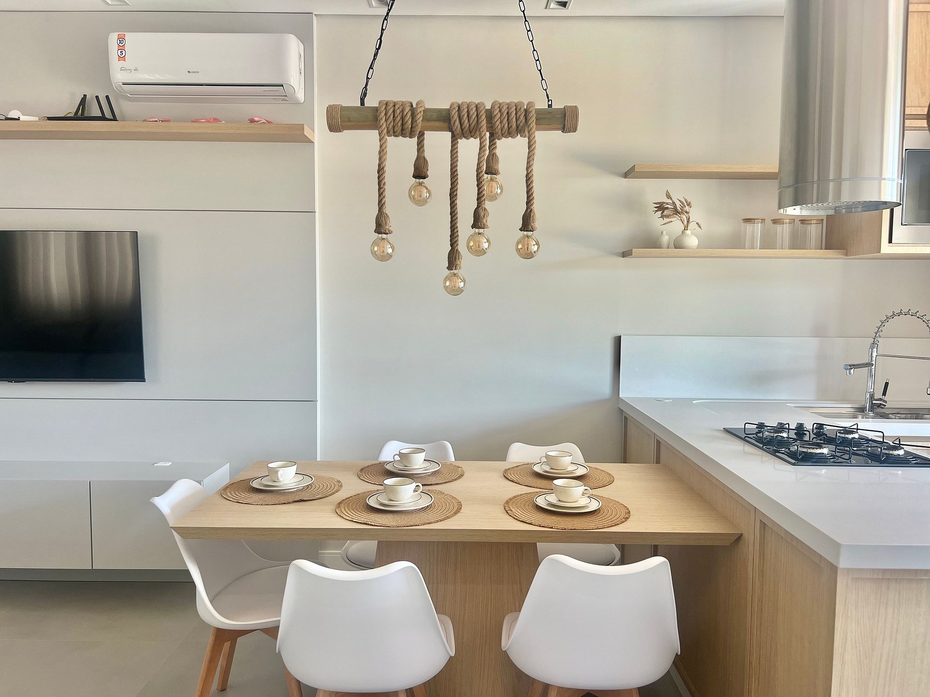 2 Camas de casal, 1 colchão extra de solteiro, ar-condicionado na sala e quartos, Smart TV, Wi-fi.