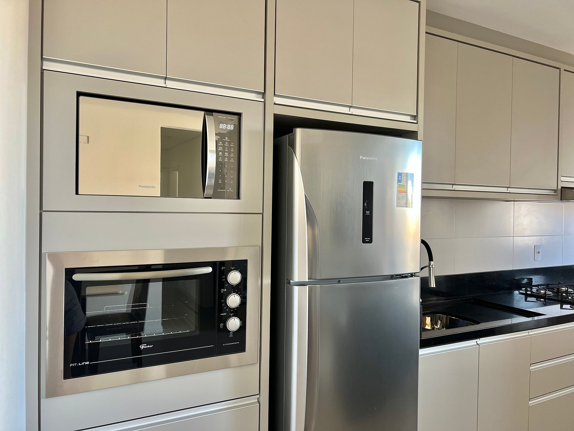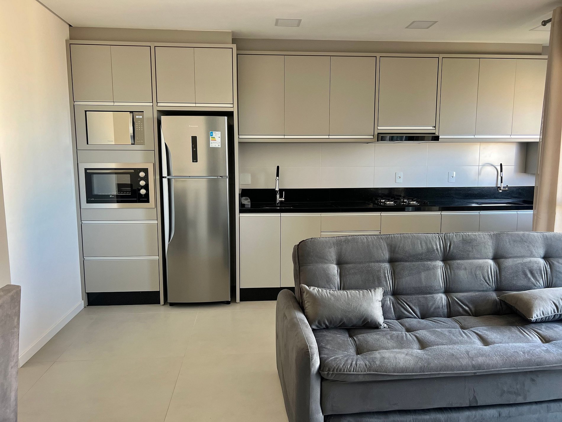 Geladeira, airfryer, micro-ondas e utensílios básicos de cozinha