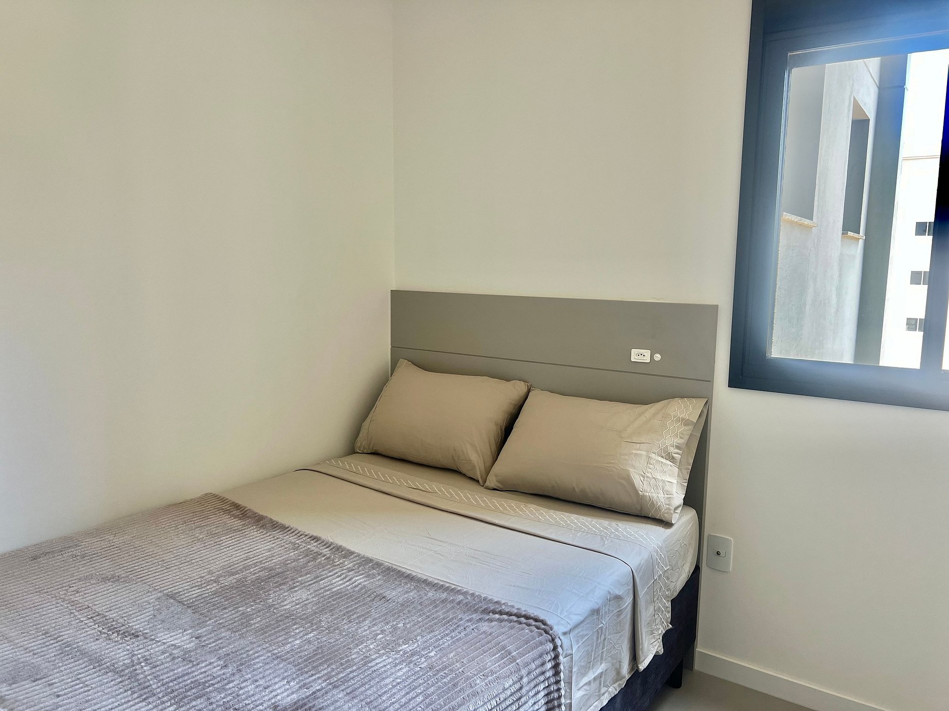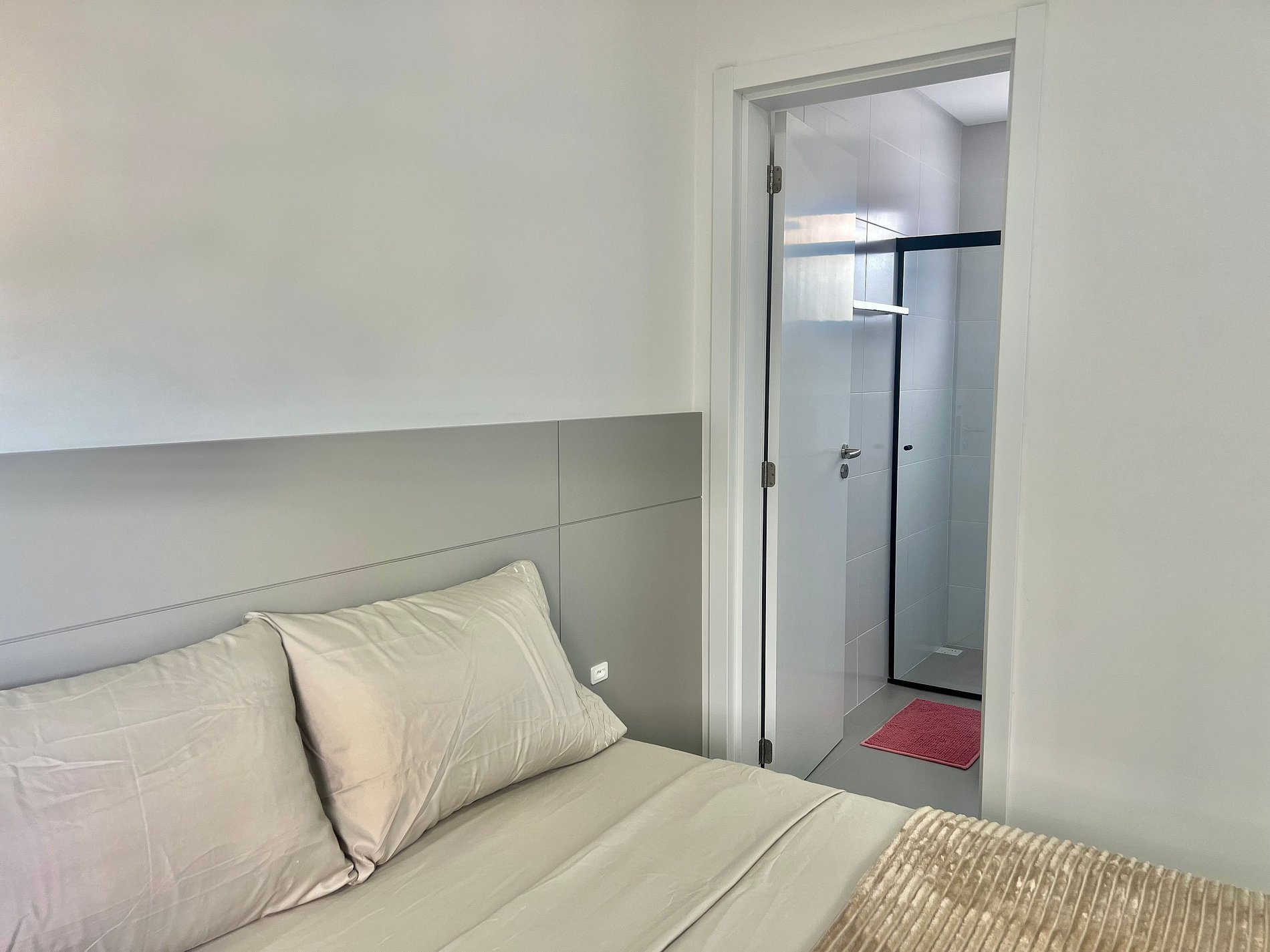 Lindo apto na praia de Grande, com três quartos, sendo um suíte, ar condicionado em todos os quartos. Ótima localização, próximo a mercado, panificadora e restaurante. A poucos passos da praia e uma vaga de garagem.