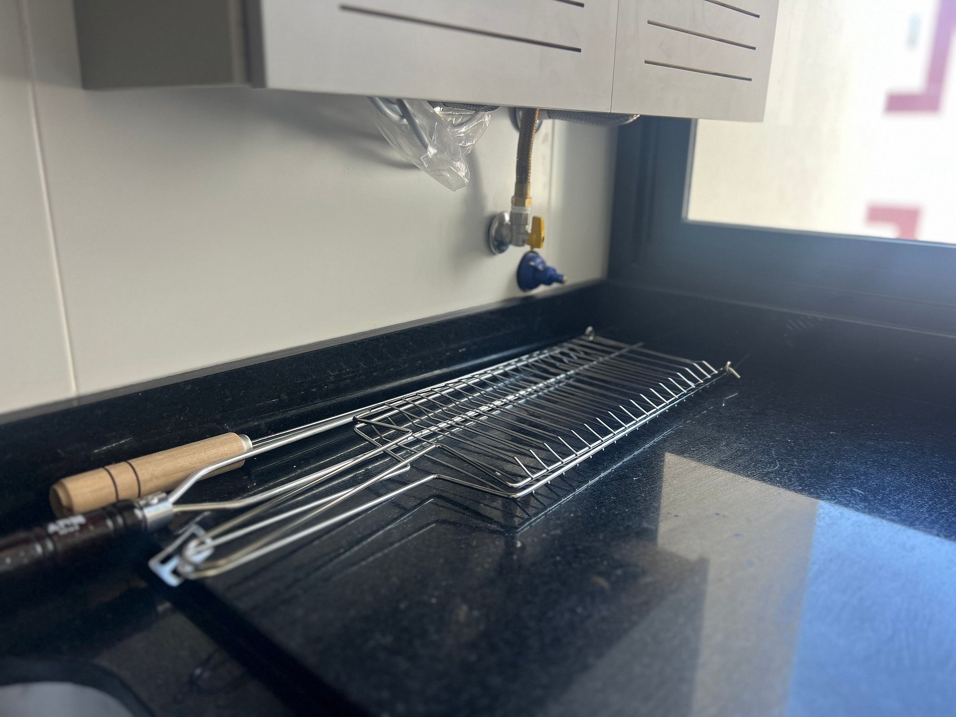 Geladeira, airfryer, micro-ondas e utensílios básicos de cozinha