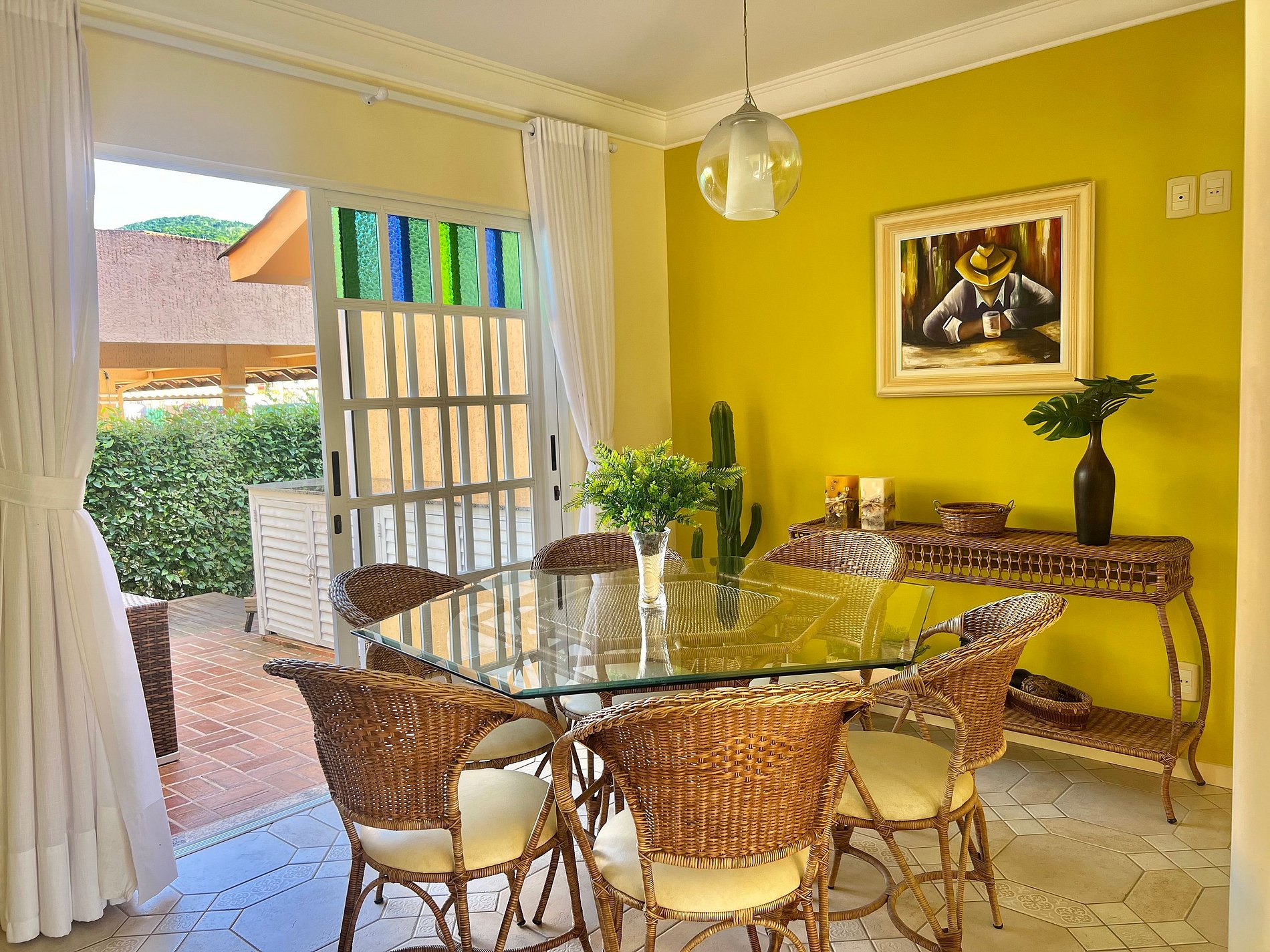 Maravilhosa casa no condomínio, à apenas 200m da praia, com duas suítes e com piscina no condomínio, 2 vagas de garagem, localizada a poucos metros da Praia de Palmas, essa propriedade conta com internet Wifi, Smart TV, ar condicionado, churrasqueira, cozinha super completa.