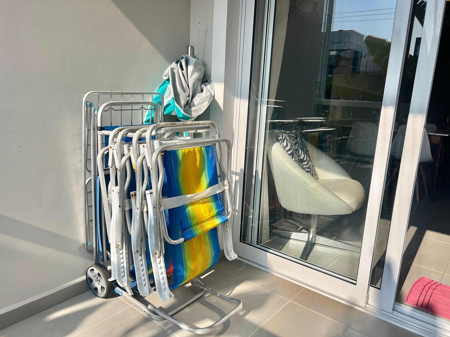 Itens de praia fornecidos: 4 cadeiras de praia, 1 carrinho de praia, 1 caixa térmica