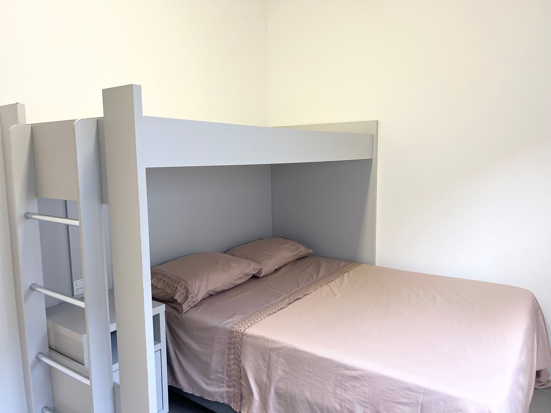 1 cama de casal sendo uma com beliche de solteiro, e uma cama queen, ar-condicionado.