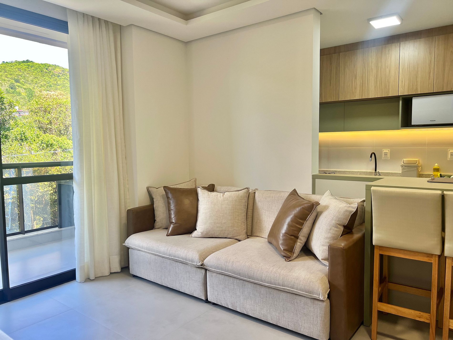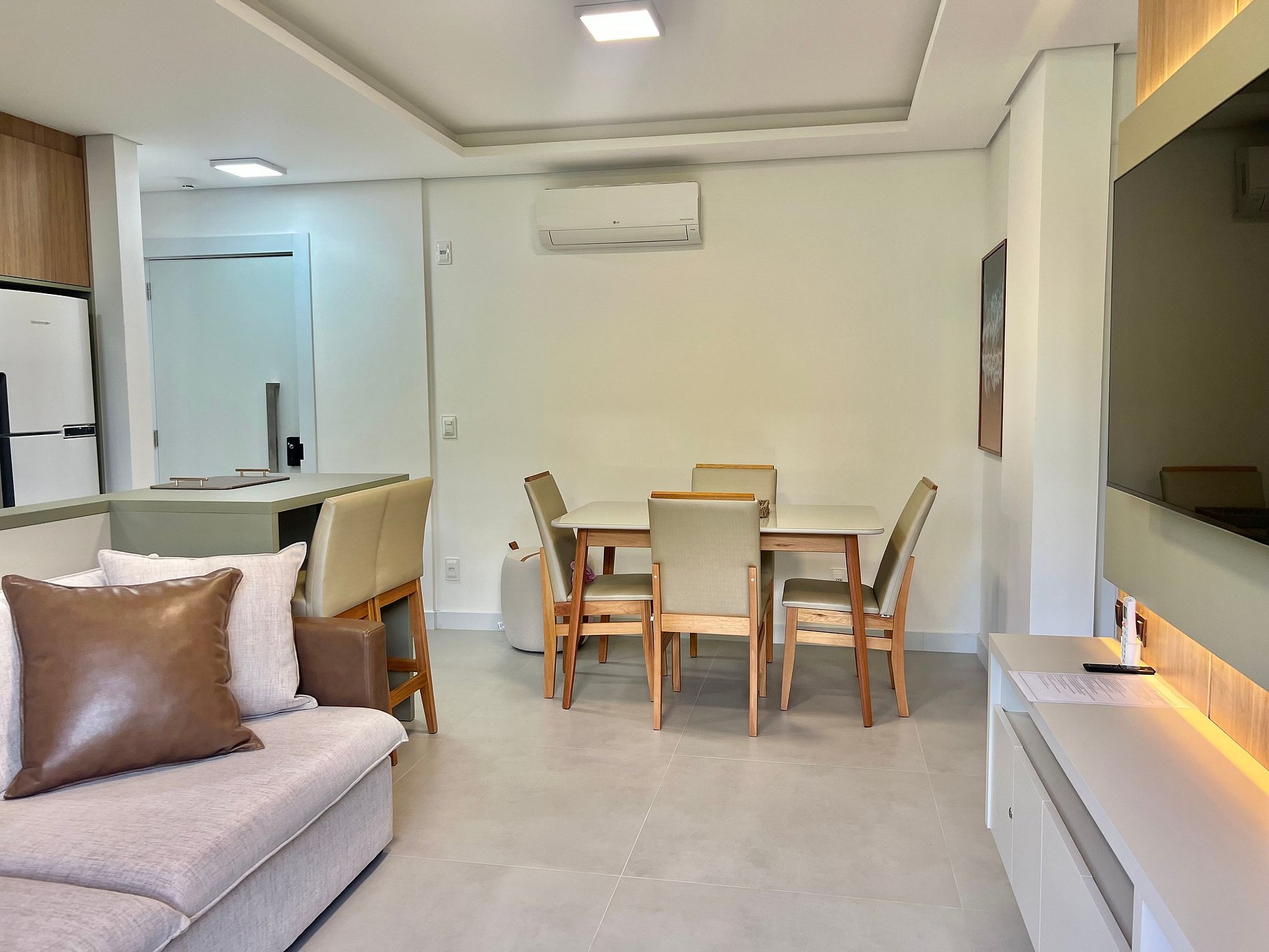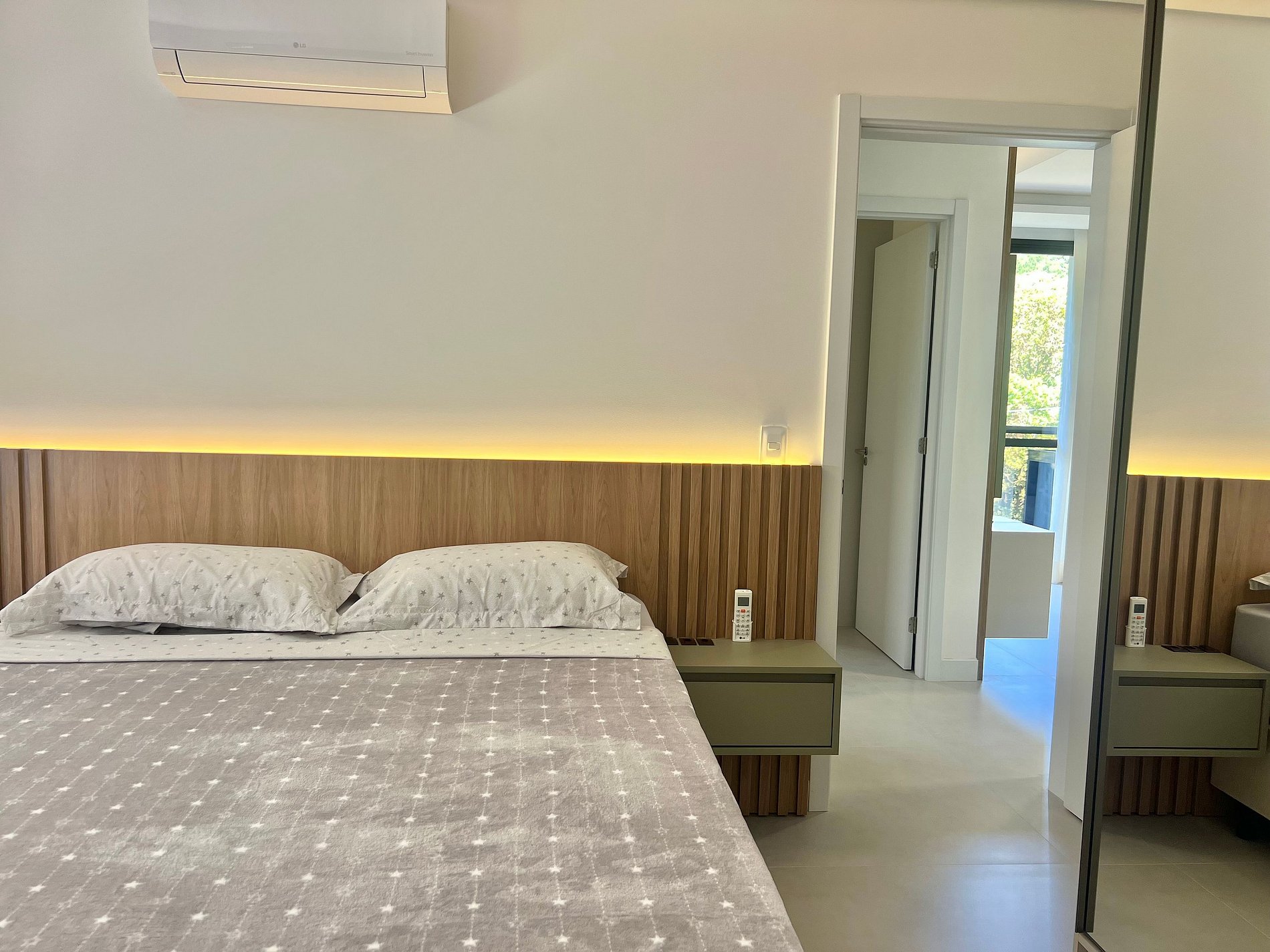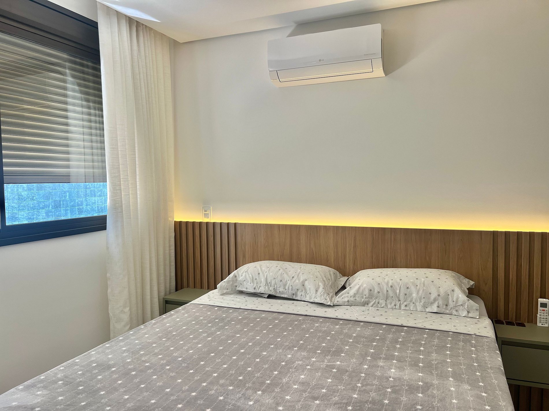 1 cama Queen, 2 camas de solteiro, 1 colchão de solteiro, ar-condicionado na sala e quartos, Smart TV na sala.