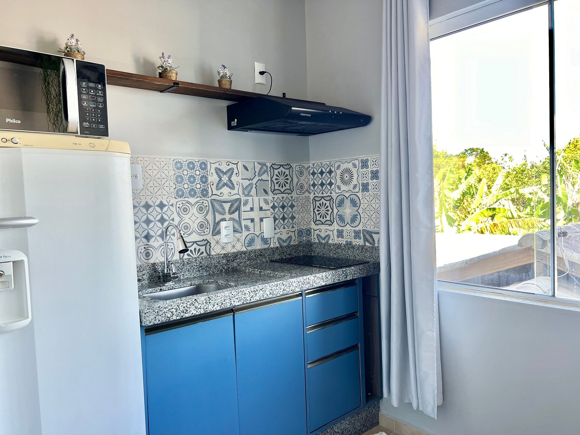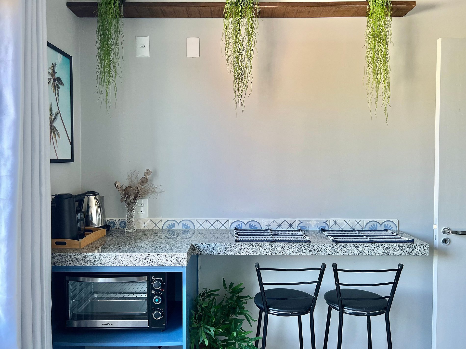 Na acomodação você irá encontrar: Cama casal e ar-condicionado. Cozinha: Fogão cooktop, geladeira, microondas, cafeteira, forno, utensílios de cozinha, Smart Tv, Internet Wifi.