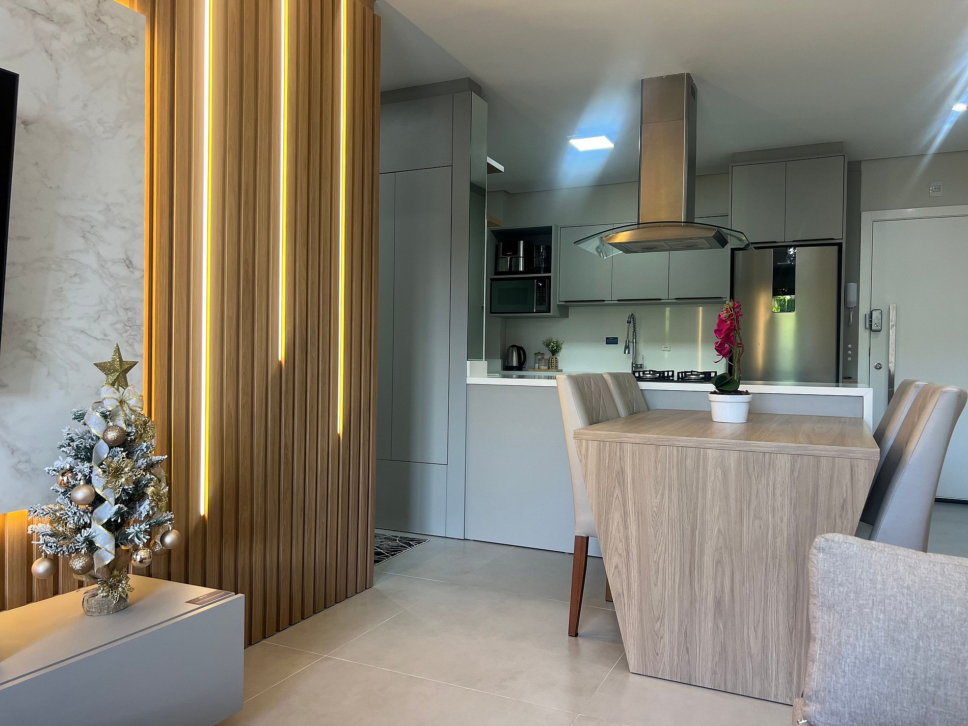 Maravilhoso apartamento, à aproximadamente 200m do mar, com dois quartos, sendo uma suíte. Com piscina no condomínio e localizada a poucos passos da Praia de Grande, essa propriedade conta com internet Wifi, Smart TV, ar condicionado, churrasqueira, cozinha super completa.