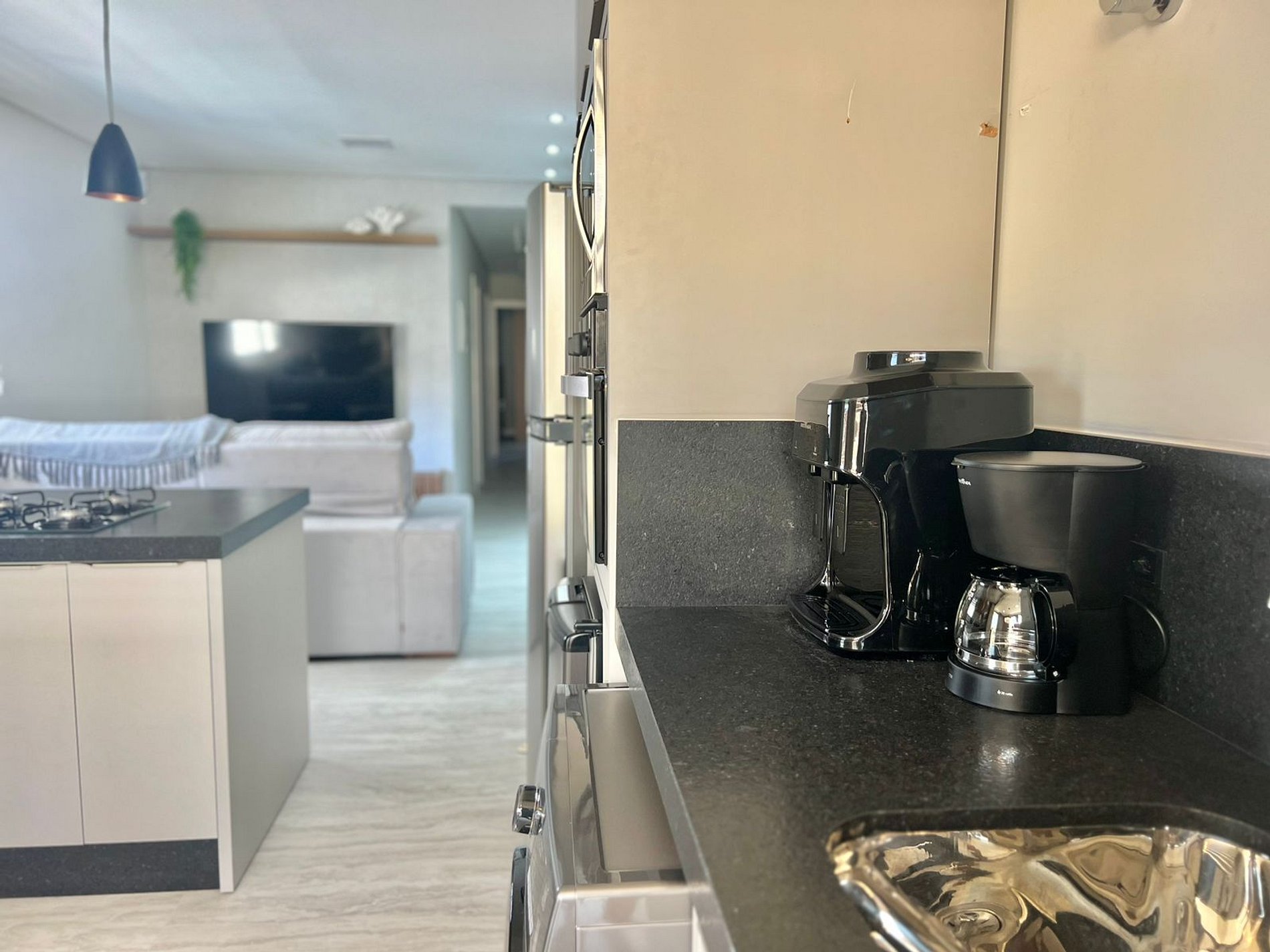 Cozinha: Fogão, forno, geladeira, cafeteira, liquidificador, micro-ondas e utensílios de cozinha.