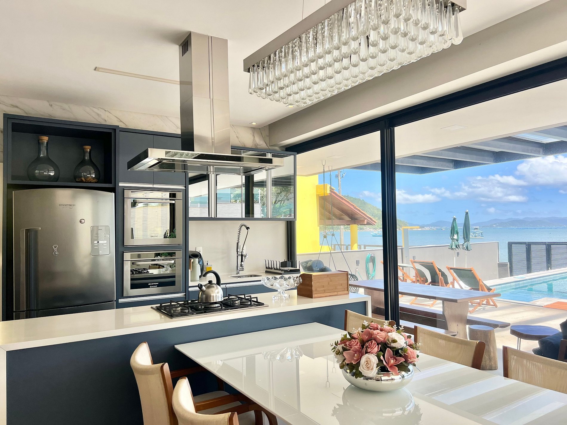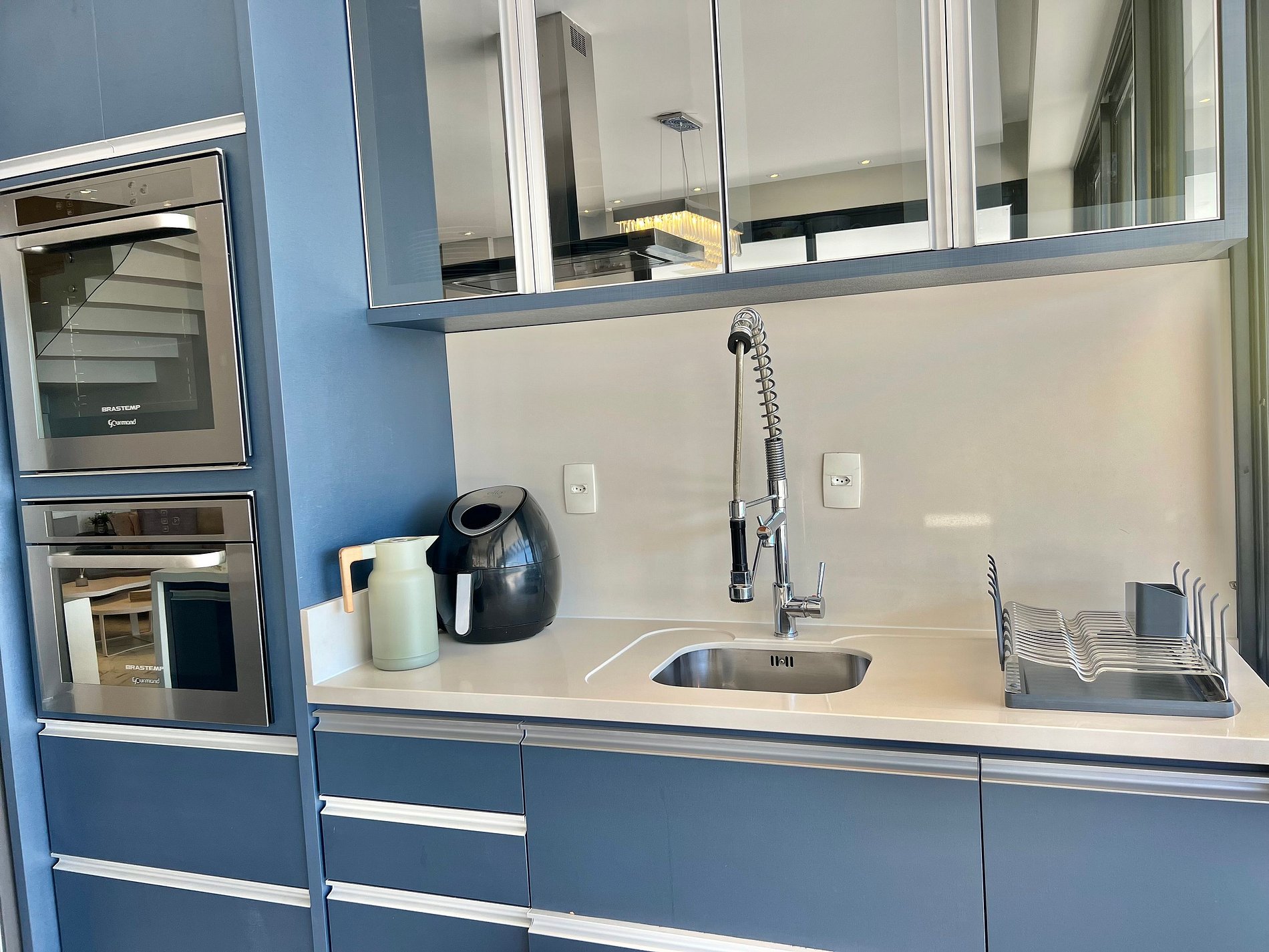 Cozinha: Geladeira, forno, chaleira, fogão, air fryer e utensílios de cozinha,