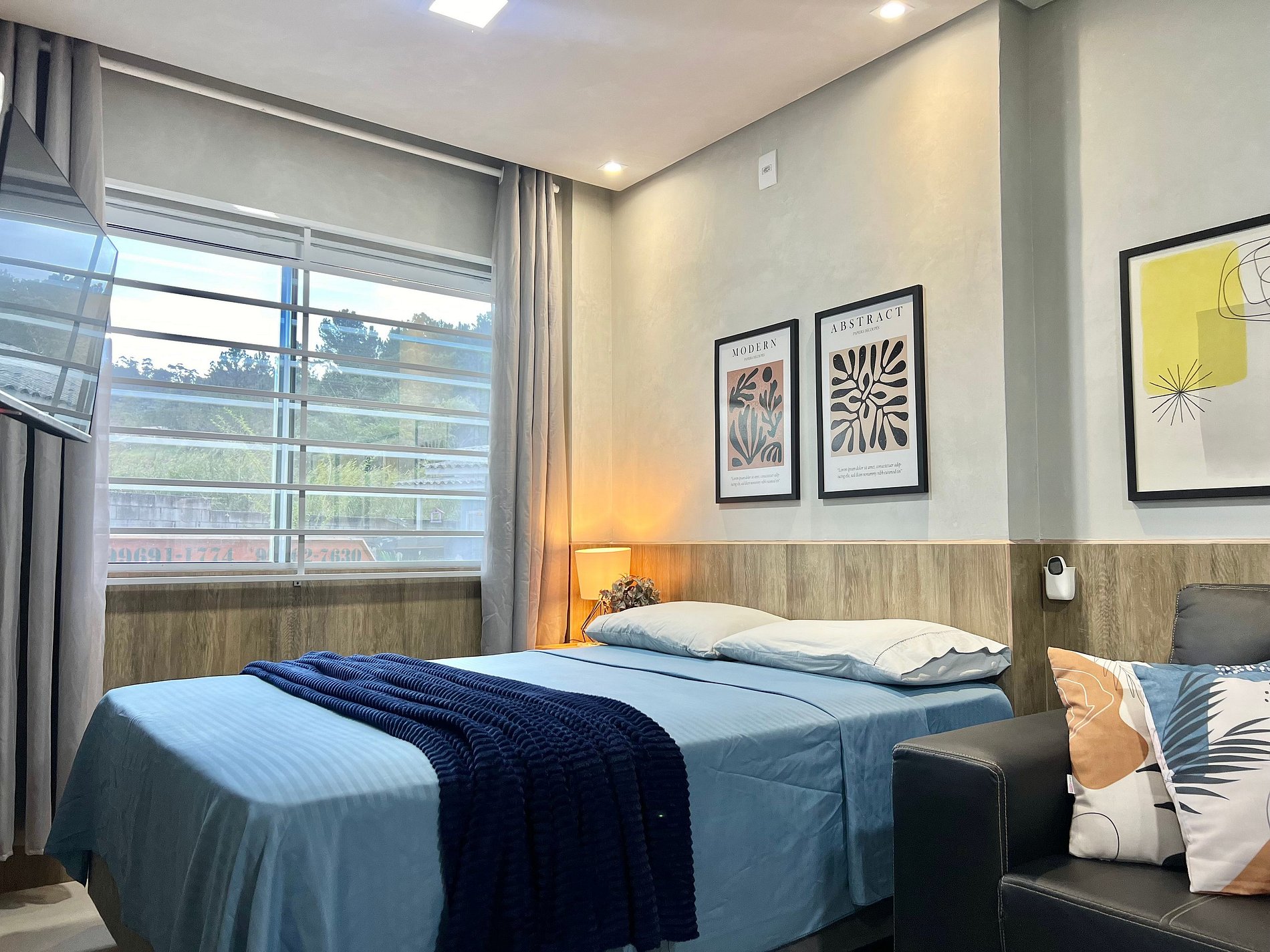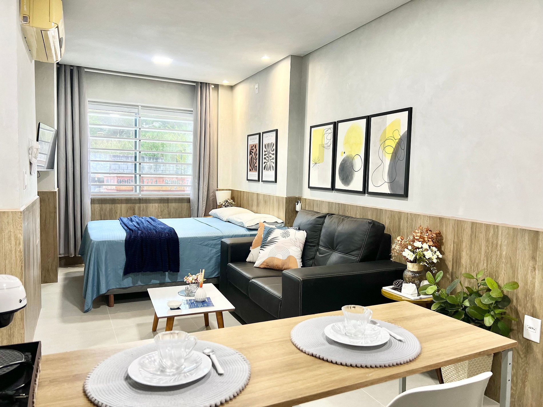 Na acomodação você irá encontrar: Cama casal, sofá, ar-condicionado, fogão cooktop, geladeira, cafeteira, forno, utensílios de cozinha, Smart Tv, Internet Wifi.