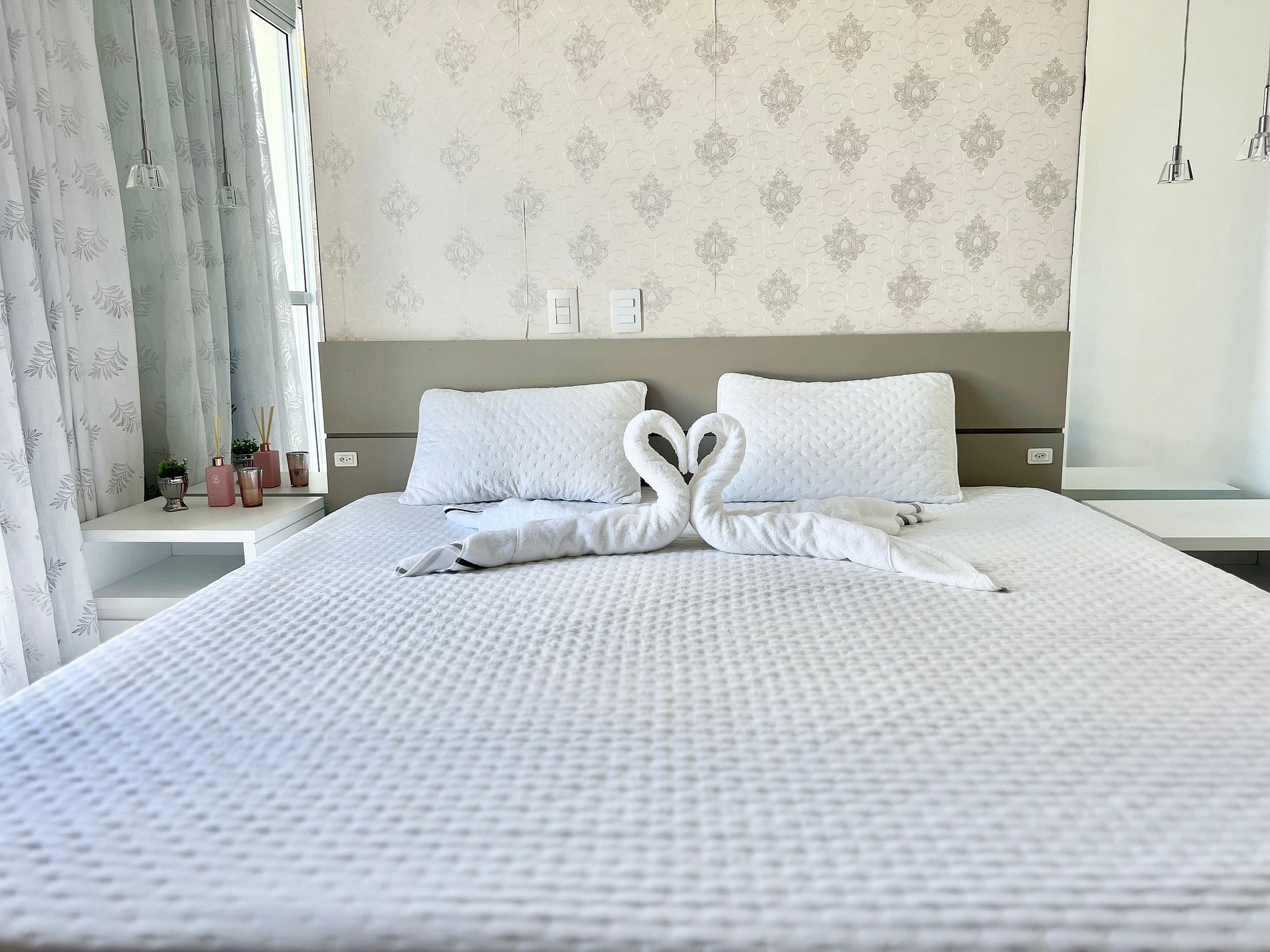1 Cama king , 1cama queen e 2 Cama de casal, ar-condicionado na sala e quartos, Smart TV, 2 vagas de garagem.