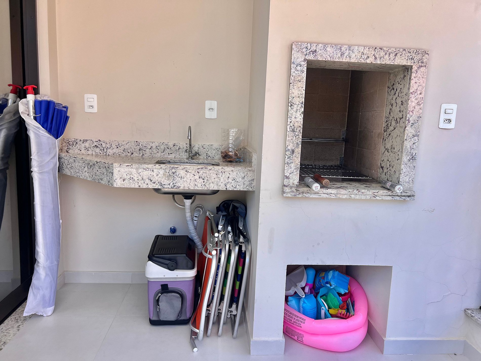 Itens de churrasco fornecidos: Espetos e grelha inteira.