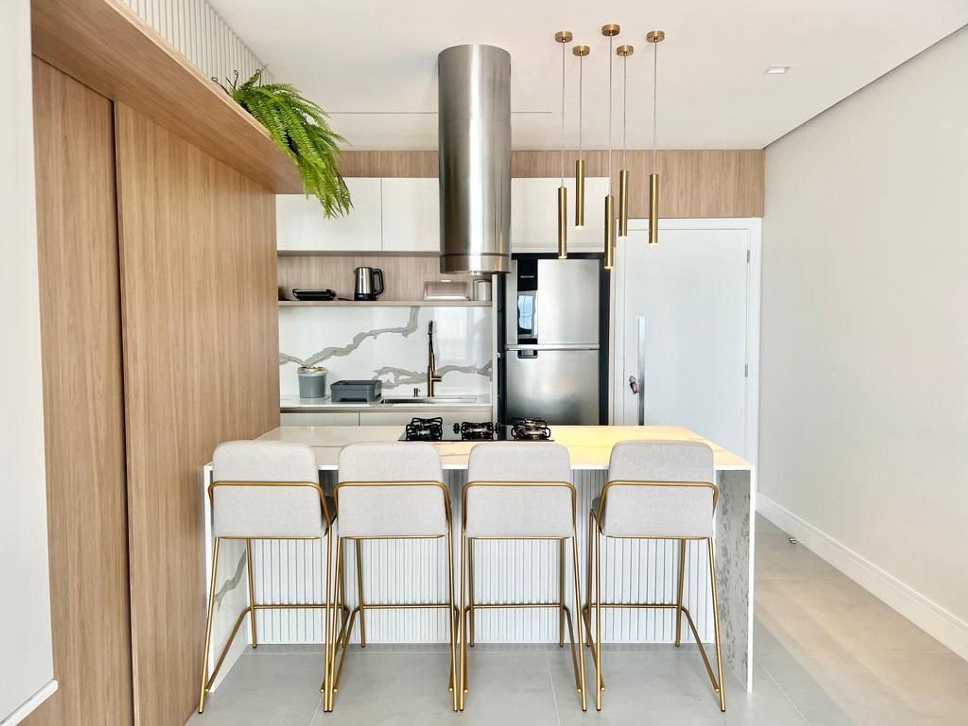 Finamente decorado, o apto conta com 3 quartos sendo uma suíte, uma sala/cozinha, lava e seca, adega climatizada, lareira ecológica, TV smart, Ar condicionado, etc.