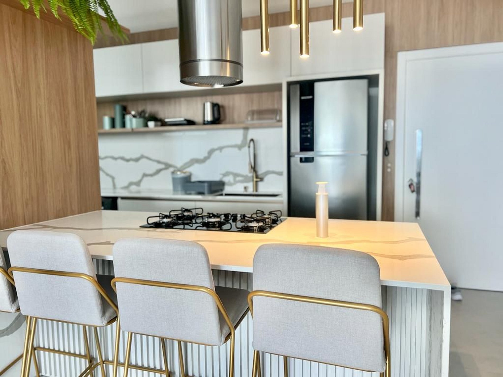 Finamente decorado, o apto conta com 3 quartos sendo uma suíte, uma sala/cozinha, lava e seca, adega climatizada, lareira ecológica, TV smart, Ar condicionado, etc.
