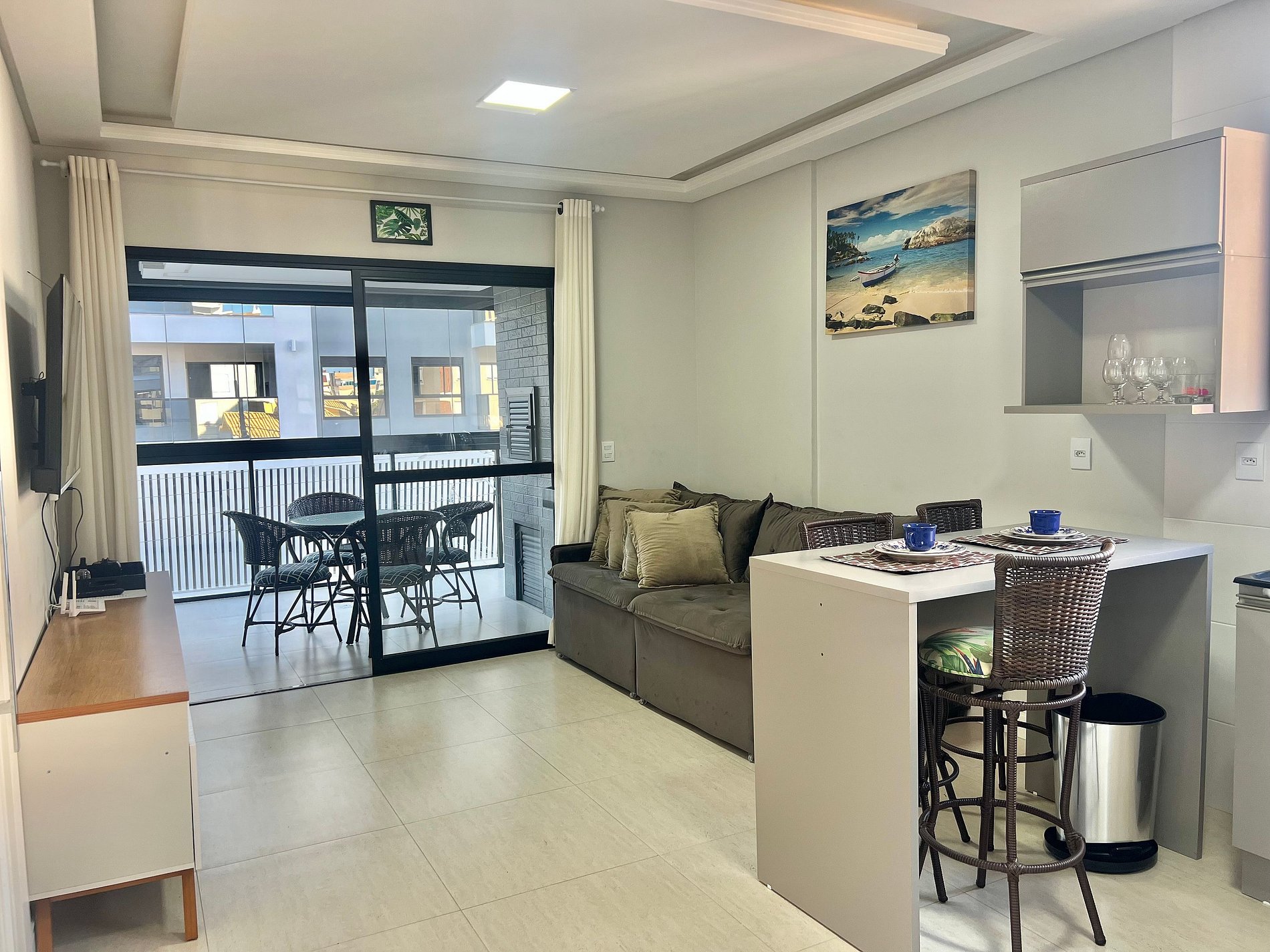Lindo Apartamento, com piscina aquecida no condomínio, localizada na praia de Palmas. Essa propriedade conta com internet Wifi, Smart TV, ar condicionado nos quartos, churrasqueira, cozinha super completa.